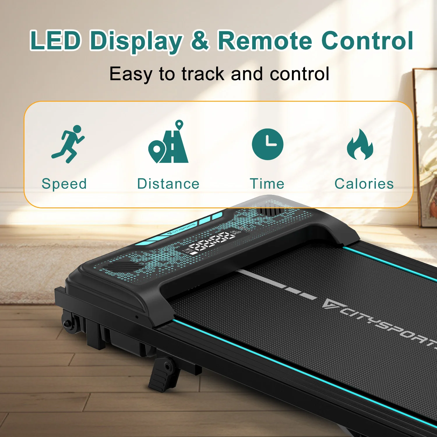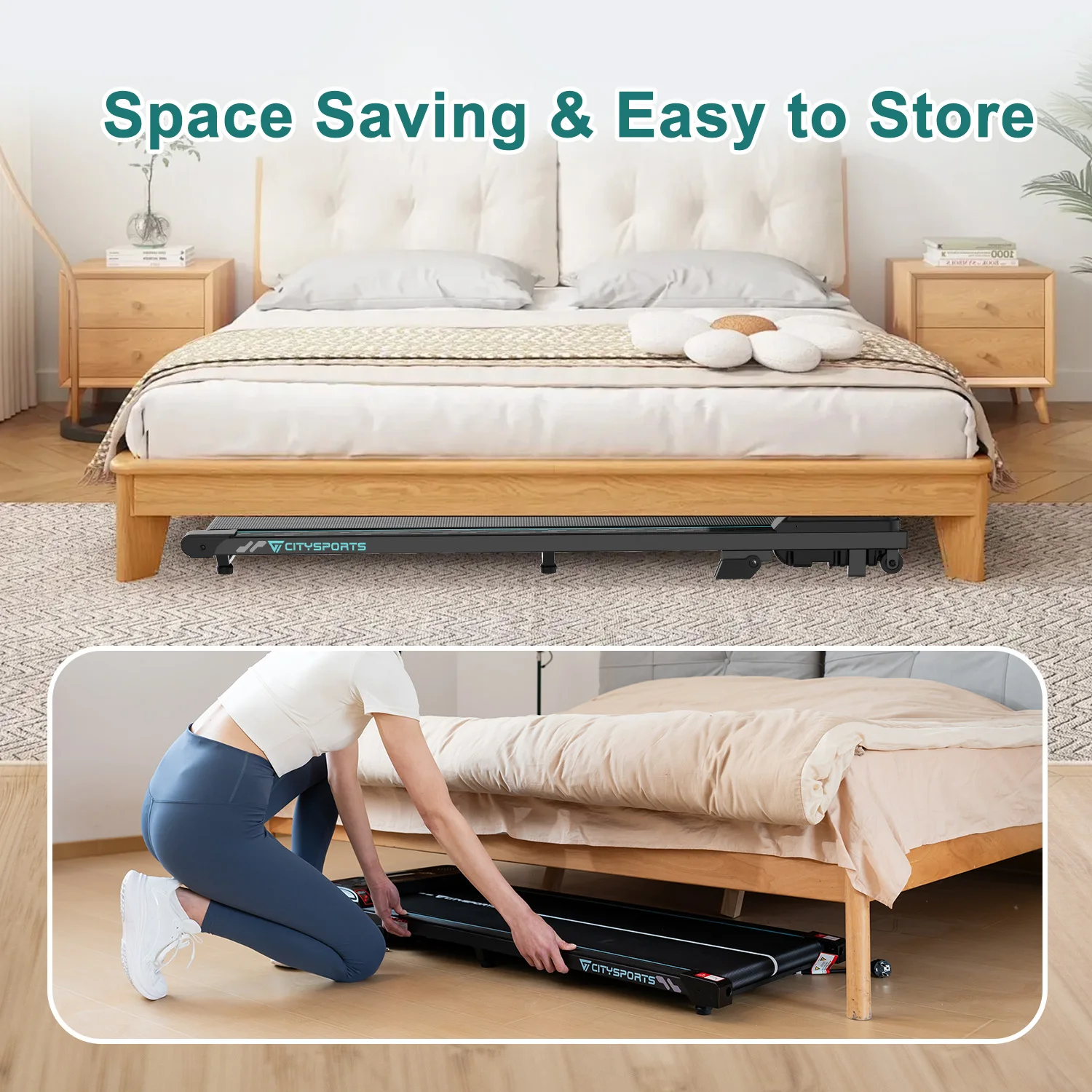 Durable Anti-slip Running Belt: The running belt surface is made of wear-resistant and anti-slip material, ensuring long-lasting durability. When storing, it can be stood upright or placed under a sofa or bed, saving space.