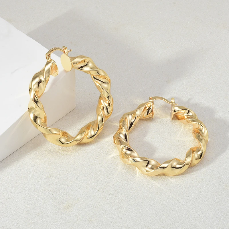 Trendy 18K Gold Plated Hoop Round Big Twist Earrings Simple Circular Texture Women Fashion Accessories Wedding Party Gift