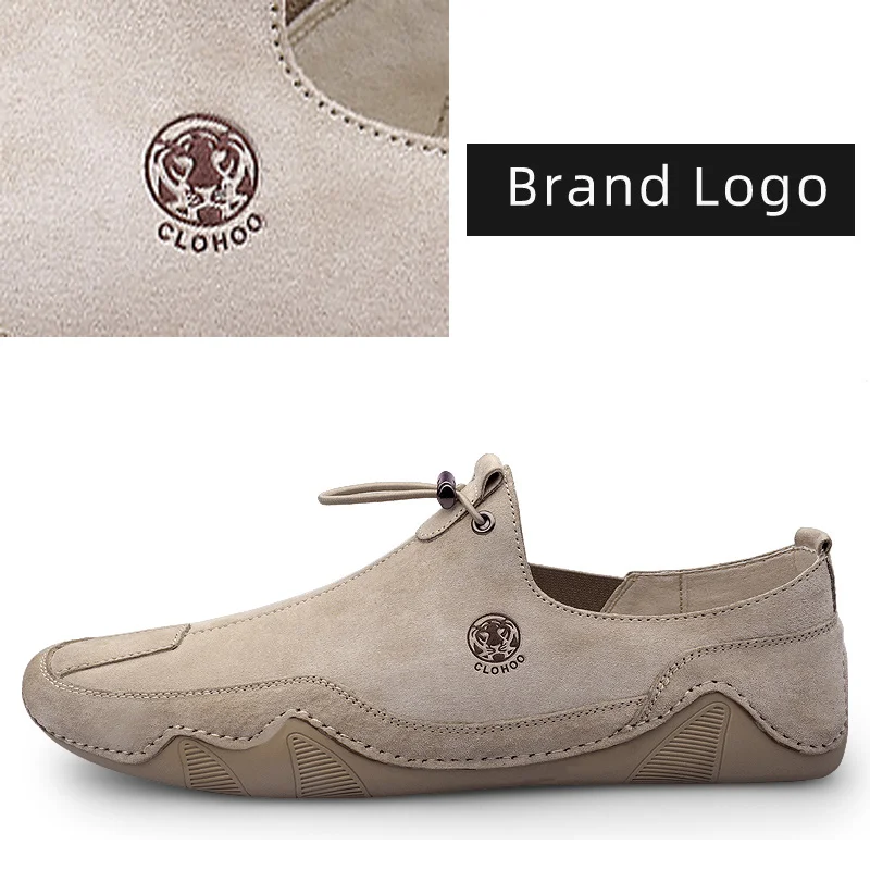 CLOHOO Breathable Light Anti-slip Outdoor Flat Shoes for Men Casual Driving Shoes Genuine Leather Boat Shoes Soft Sole Footwear