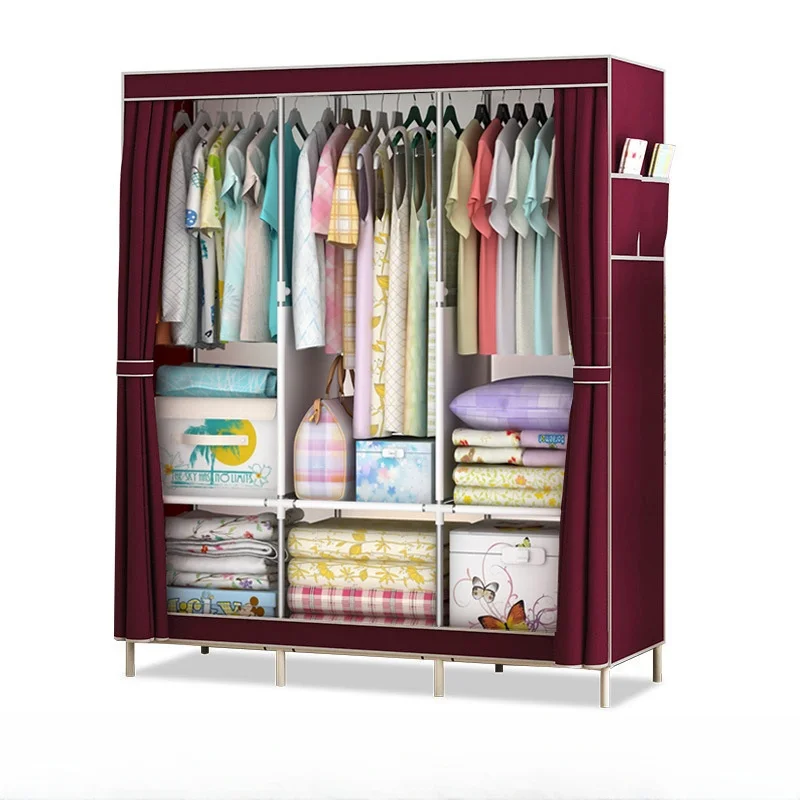 Reinforced Simple Cloth Cabinet Storage Wardrobe Dustproof Organizer Dormitory Steel Frame Reinforced Combination|Reinforced Steel Frame:Features a robust steel frame, ensuring durability and stability for your wardrobe storage needs.