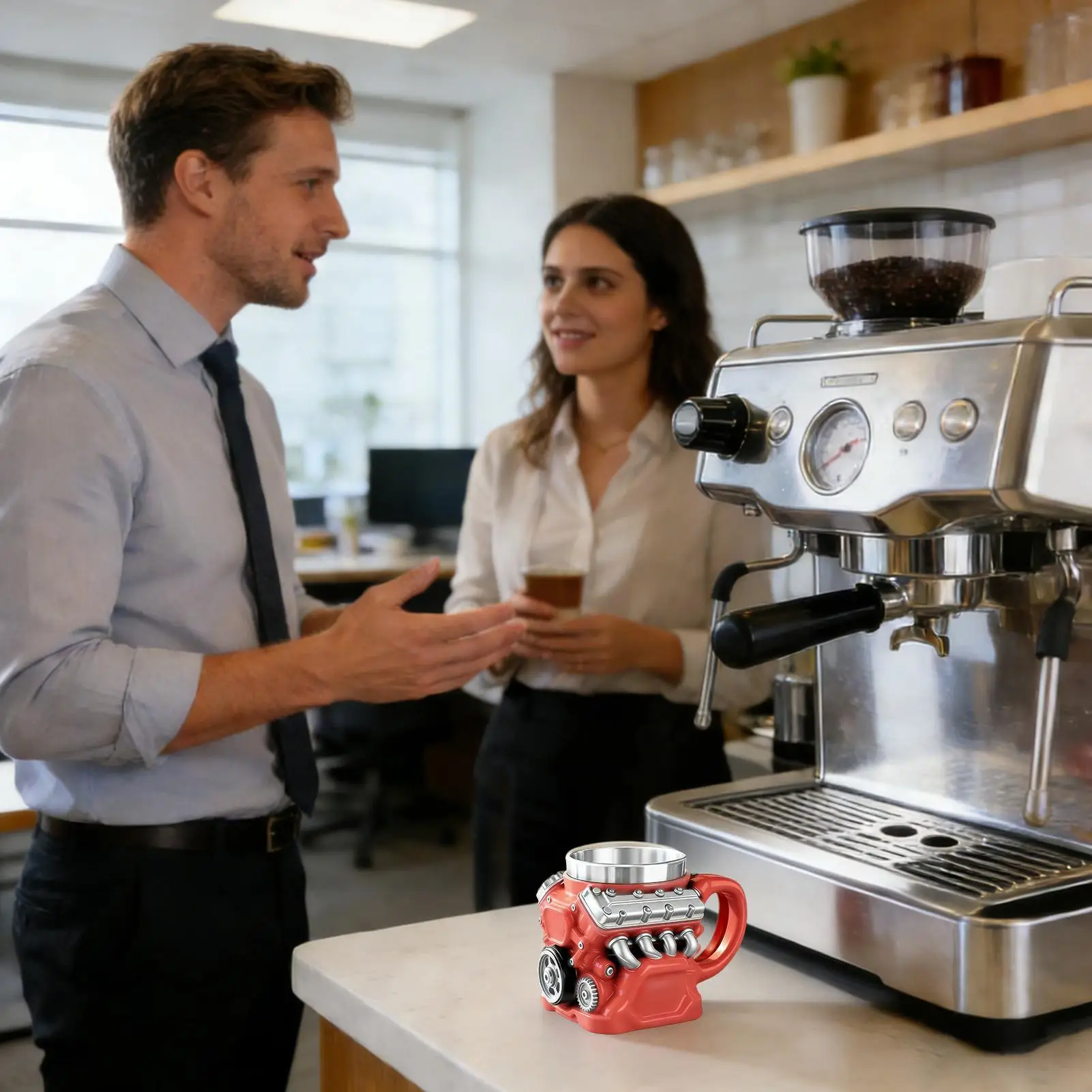 1.Engine Shape Design: Designed with a realistic engine outline, this engine coffee mug serves as both a practical drink container and decorative accent, elevating the visual charm of automotive-themed interiors and sparking conversations among enthusiasts at social events