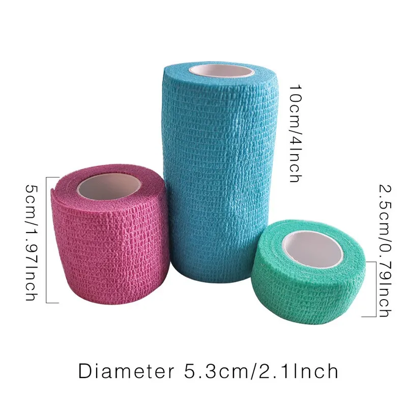 This bandage is a non adhesive tape that sticks to itself, no need for pins or other tapes to keep it together. It is ideal for applying compression to injured muscles as it does not stick to the skin or hair.