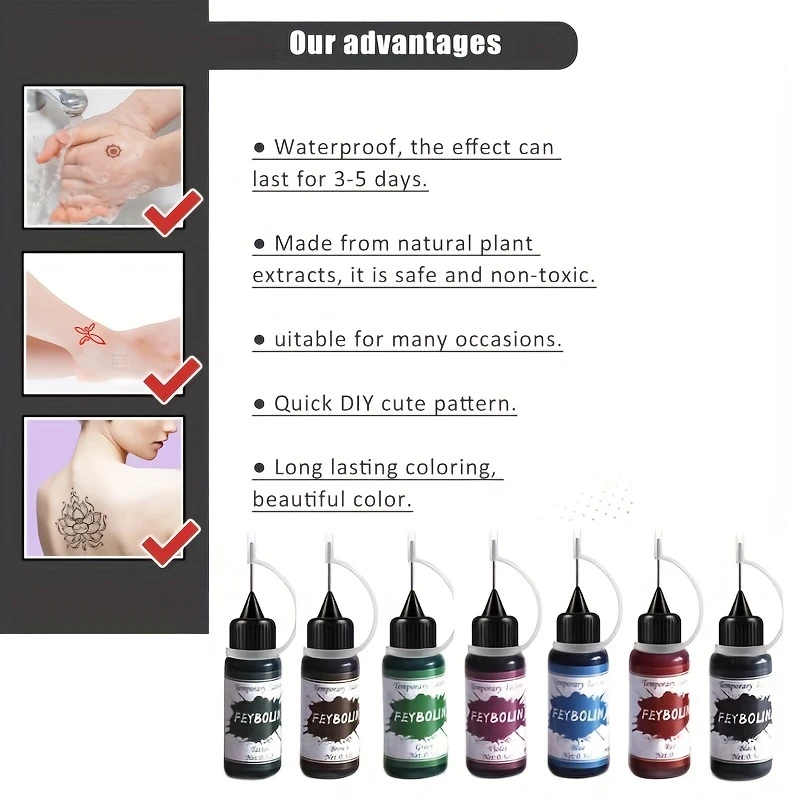 Colorful Tattoo Juice Paste, Painless Tattoo, Full and Bright Color, Not Easy to Fade after Washing, Can Last at least 2 Weeks without Fading, Very Suitable for Friends who are afraid of pain but like to change various tattoos. Multi-color matching can draw various patterns to make tattooing more easy and enjoyable