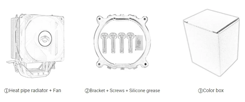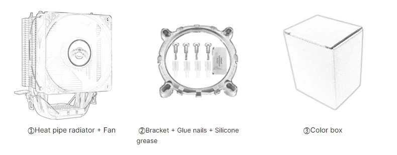 Package: Color Box (CPU cooler*1, Includes 1 set of Intel base bracket and screws,silicone grease*1 )