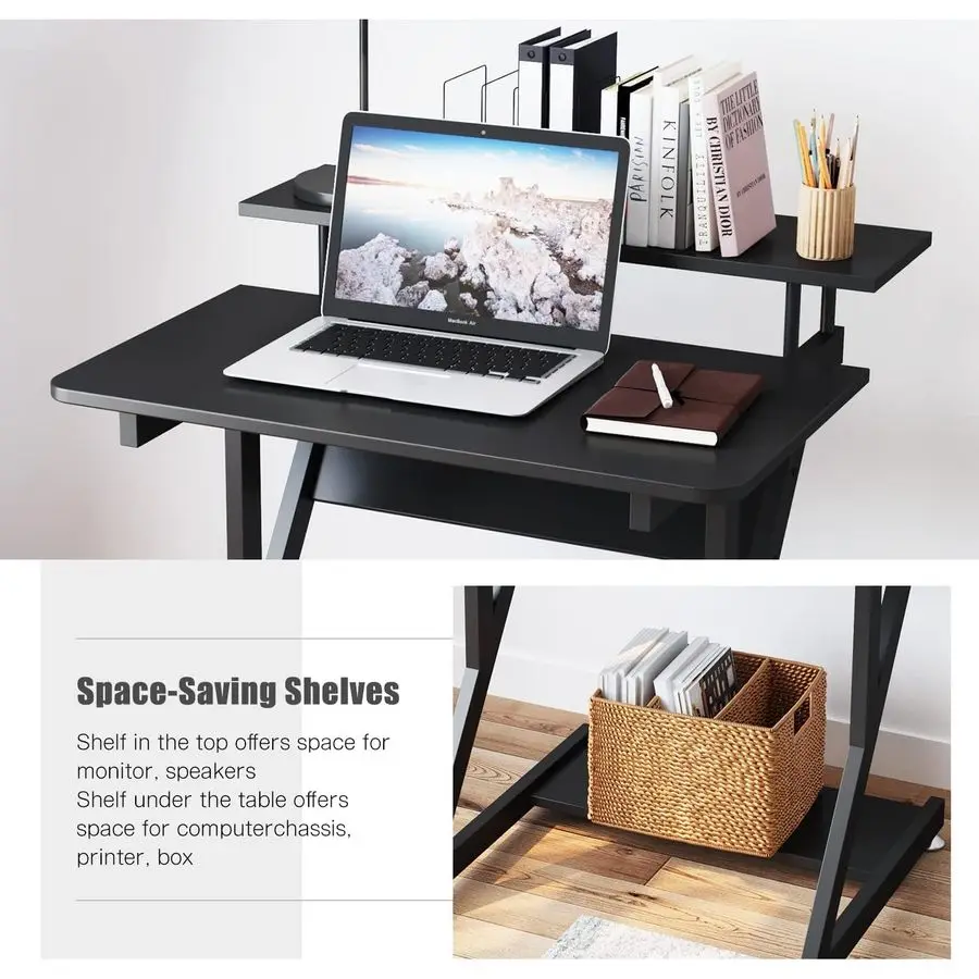 SpaceSavingThis small computer desk features a spacesaving design with ample space for storing your books, plants or a printer, etc. While the smooth top surface provides a perfect platform for your laptop and accessories.