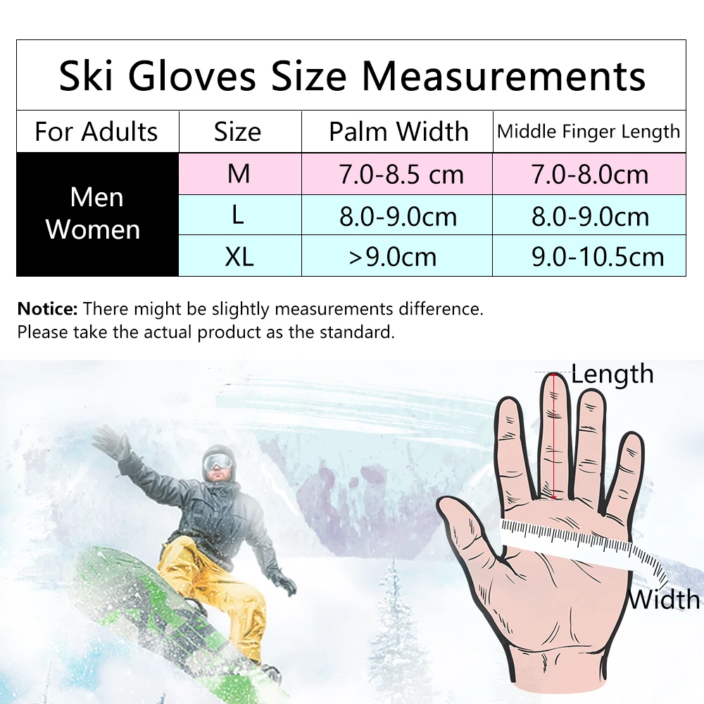 How to Choose: COPOZZ Ski gloves are generally snug fit. You'd better choose the larger size if you are in between sizes.
