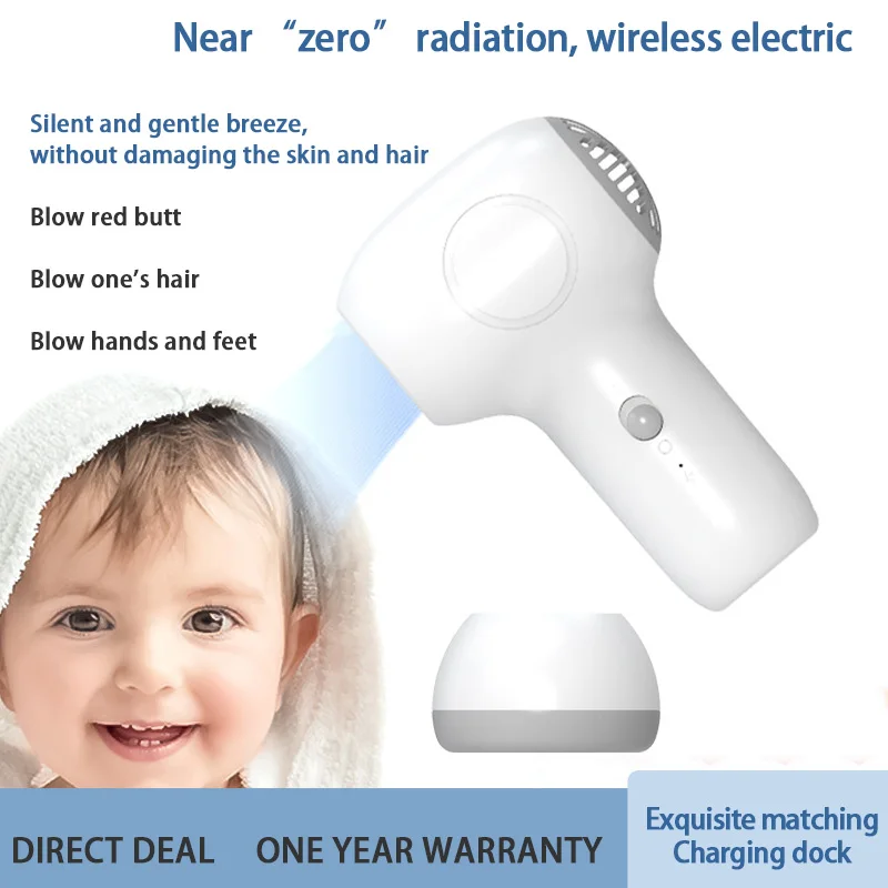 Cordless Baby Hair Dryer for Infant Kids Mini Hair Blow Dryer Rechargeable Low Noise Gentle Heat for Baby Butt Skin Safe
