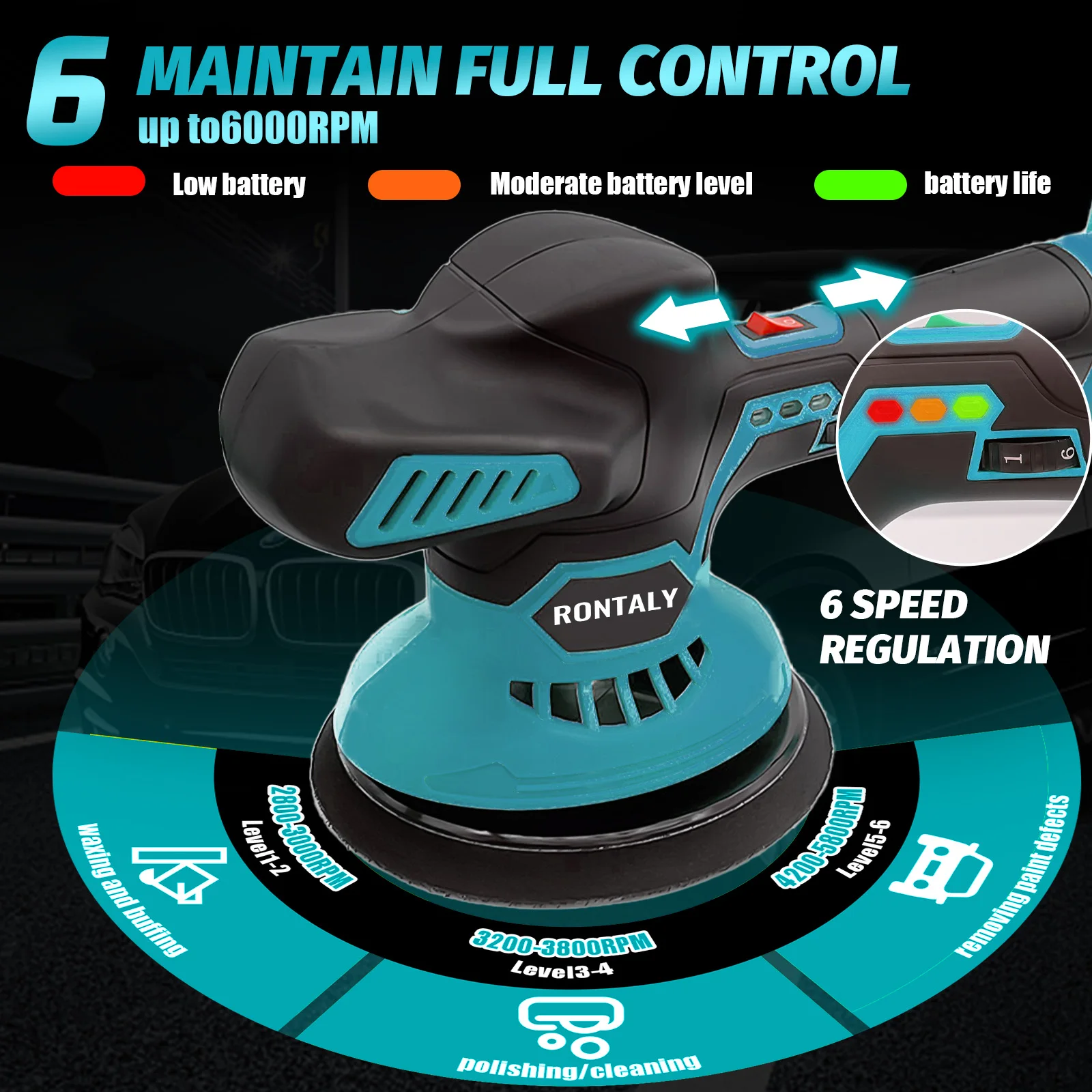 [ 6 Variable Speed Control]: Six speed settings from 2500-5000RPM for buffing, buffing and sanding vehicles, cars, bikes, boats, kitchen/bathroom tiles and more.