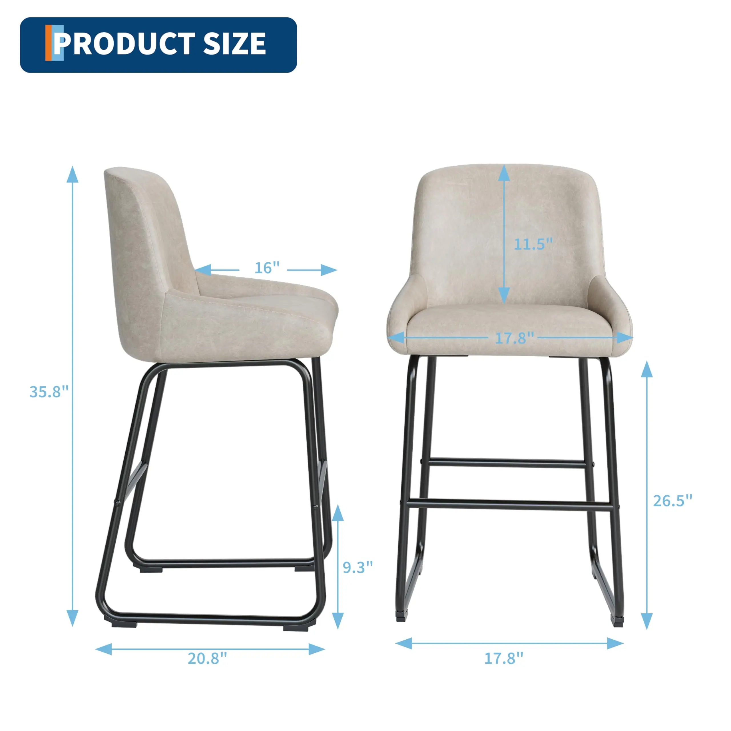 Optimal Counter Height Design: These counter height bar stools feature a 26.5" seat height, perfect for 36-39" kitchen islands or counters. Please check your island height before ordering to ensure a seamless fit for your home dining, breakfast nook, or entertainment spaces