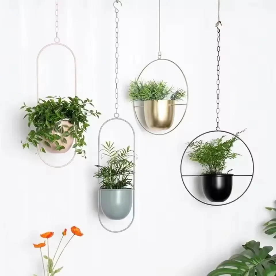 Creative Iron Plant Hanging Basket with Hook Modern Succulent Plant Flowerpot Hanging Bucket Simple Plant Pot Home Decoration