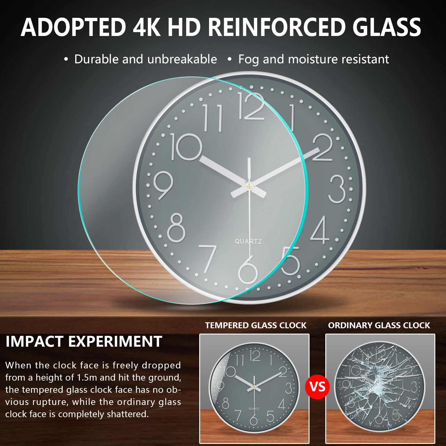 Material:ABS Plastic Frame + Tempered Glass Clock Face