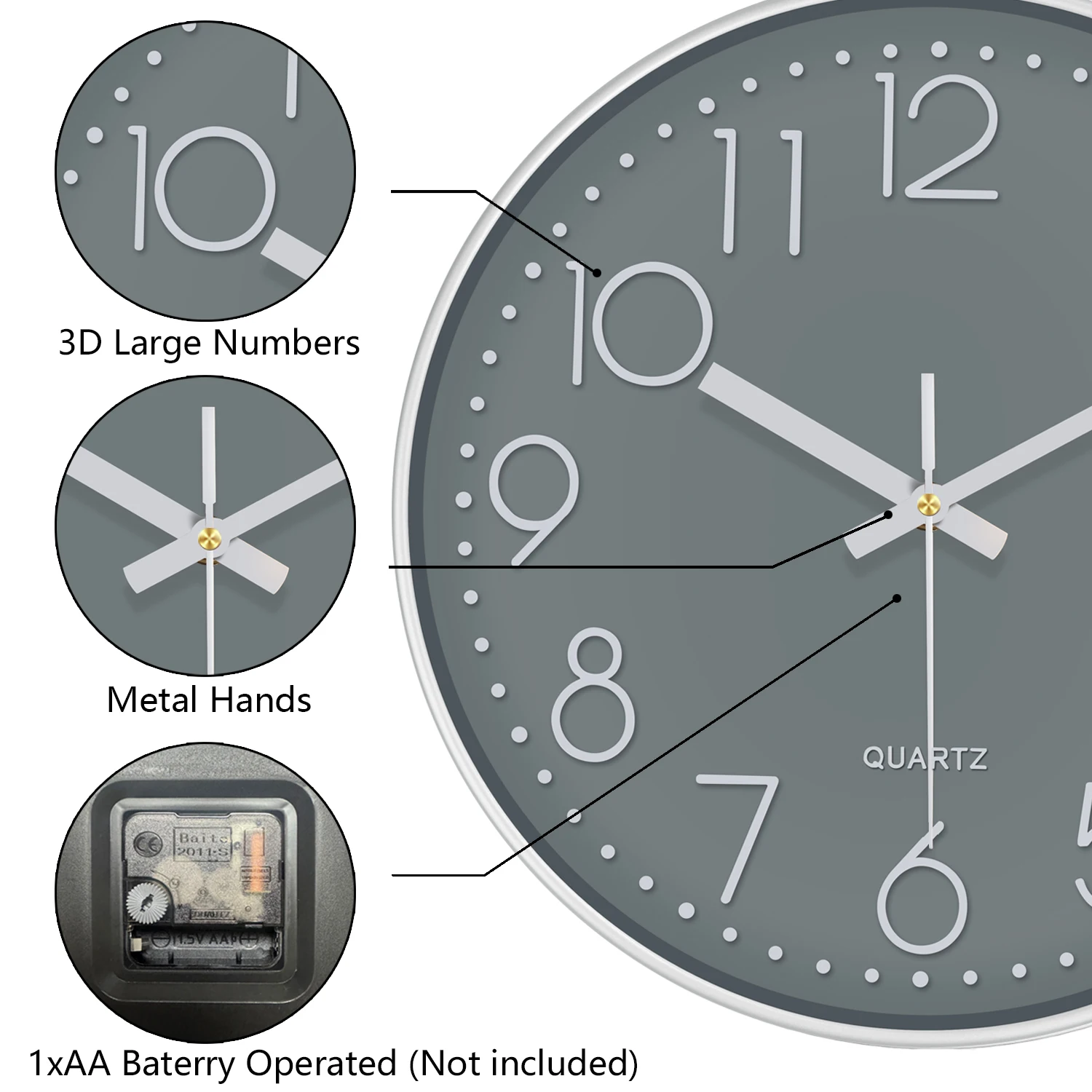 Package Contents: 1 x Wall Clock(without Battery)