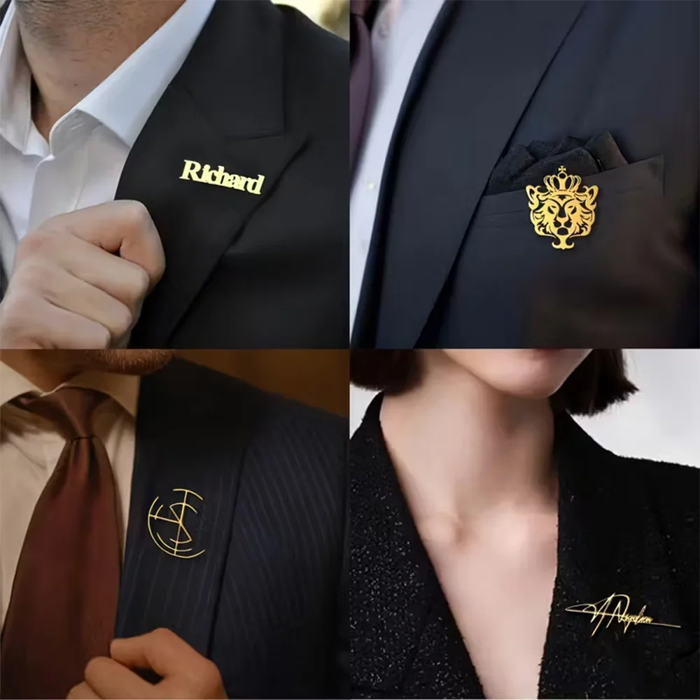 Customize Any Logo Image Brooch Stainless Steel Pins For Men Gentlemen Clothing Accessories Wedding Birthday Brooches Jewelry