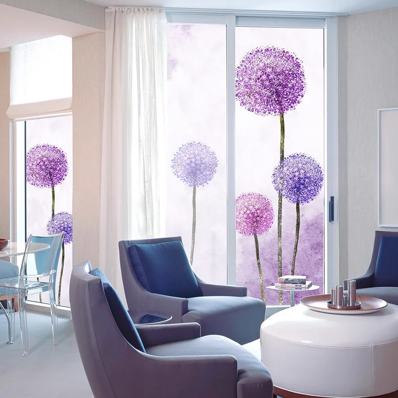 Custom Size Static Cling Privacy Window Film Dandelion Green Leaf Tulip Flower Style Home Glass Window Door Decor Customizable