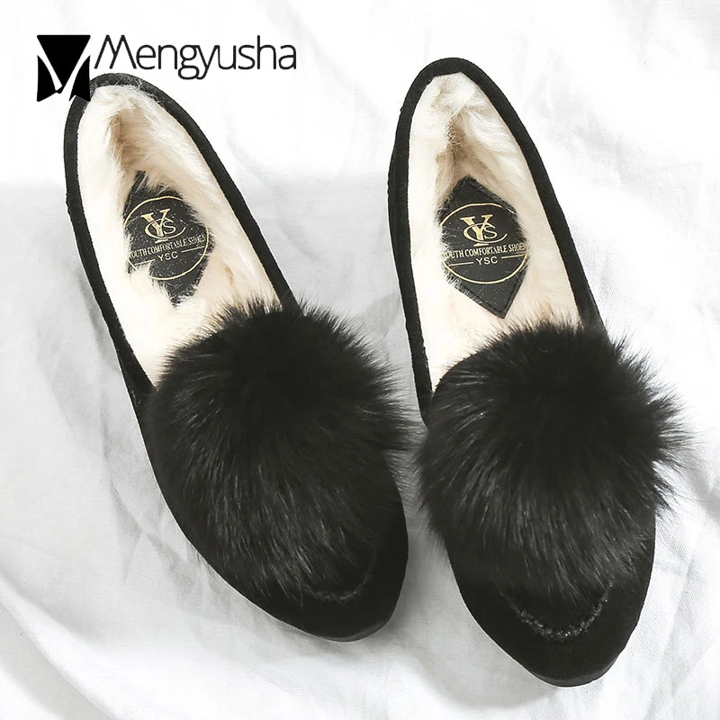 Winter Fur Flats Mocassins Shoes Women