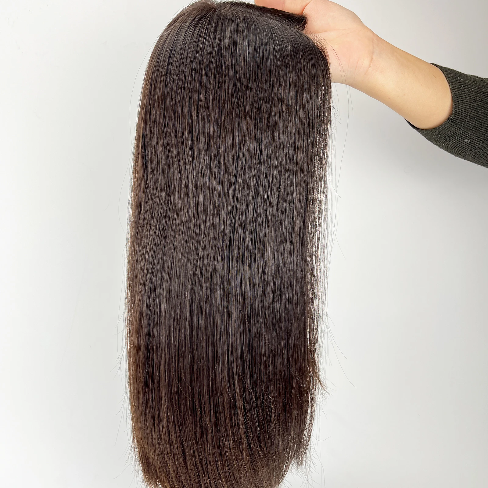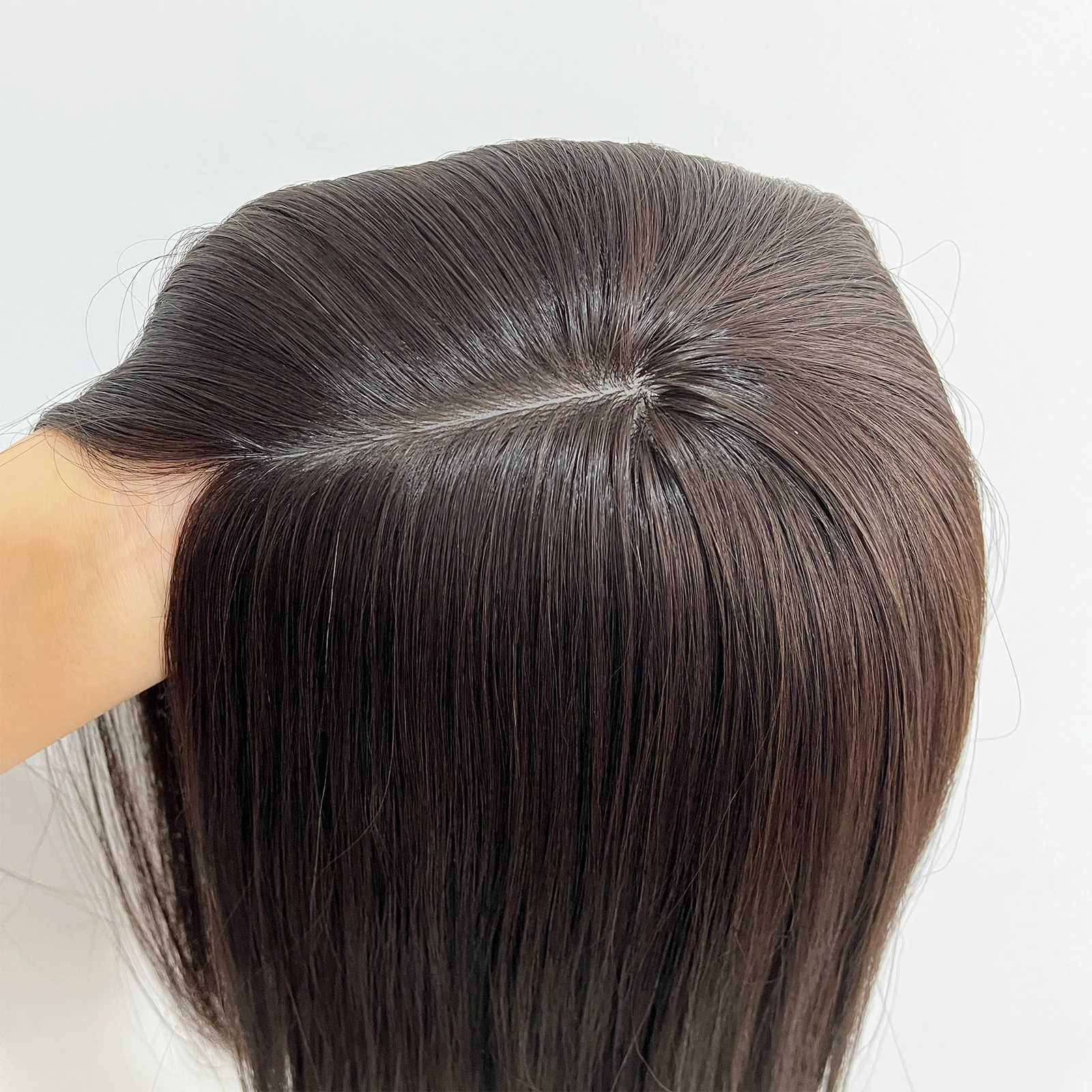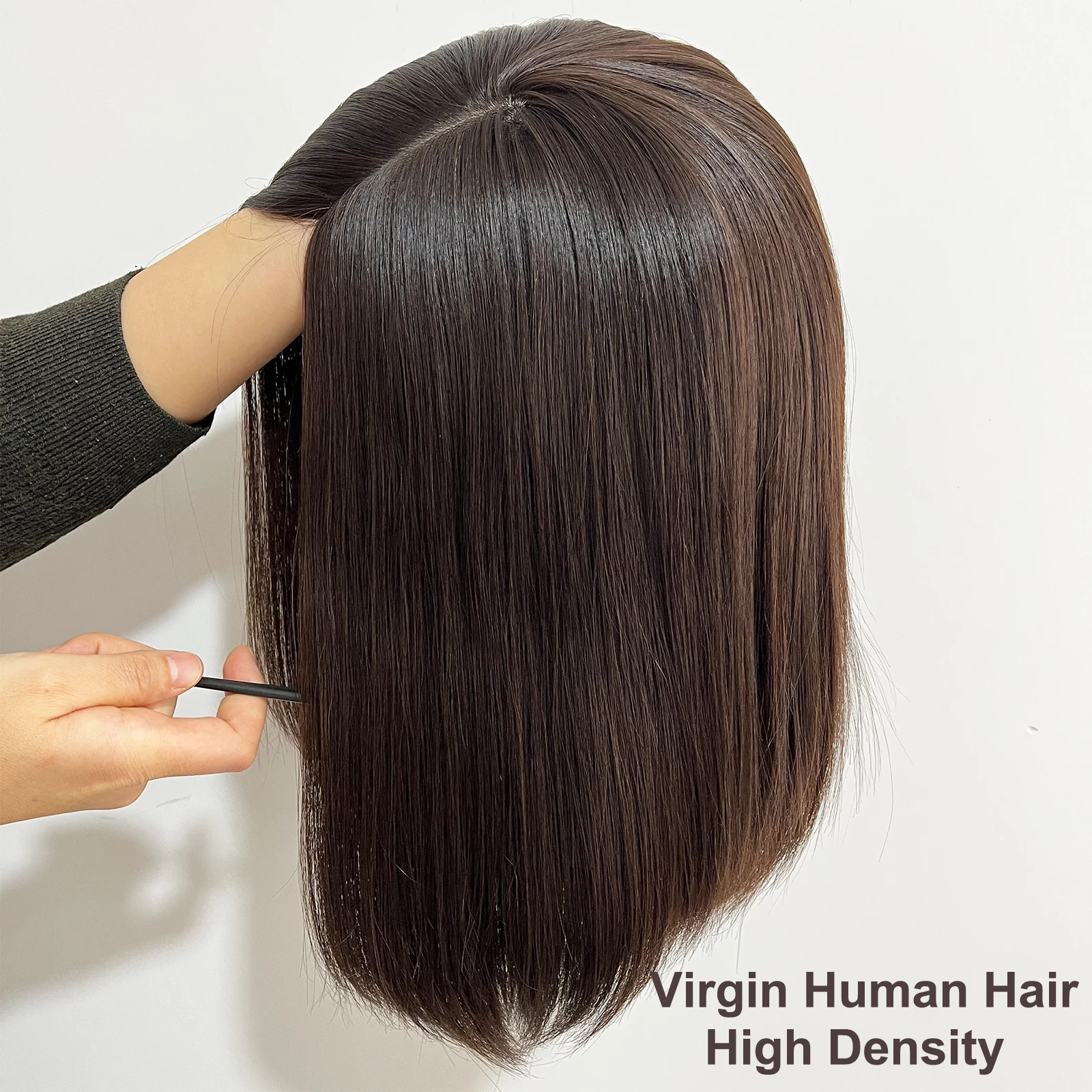 Dark Brown Jewish Topper Real Virgin European Human Hair Kosher Sheitels for White Women Silk Top Hairpieces Natural Scalp