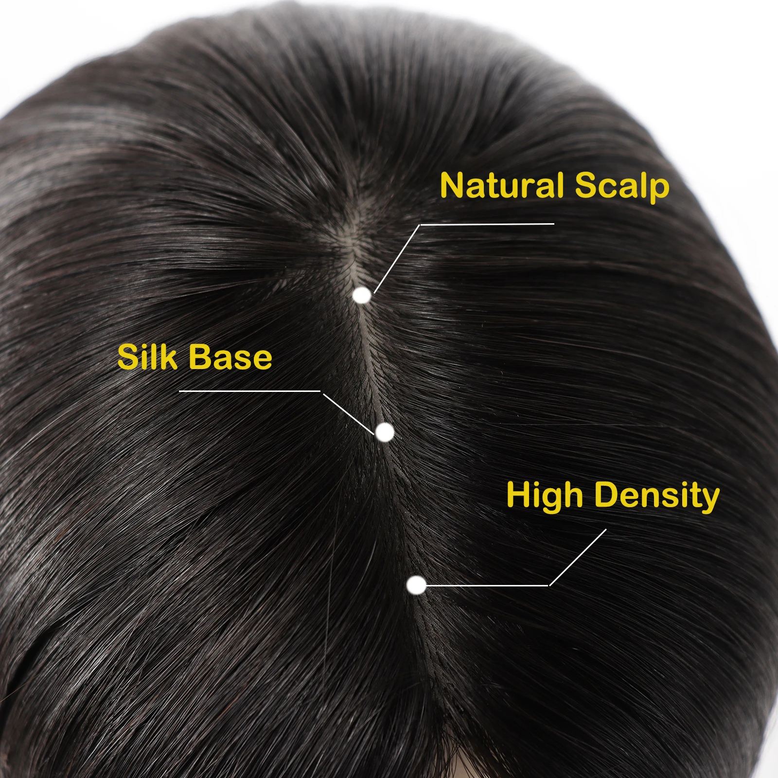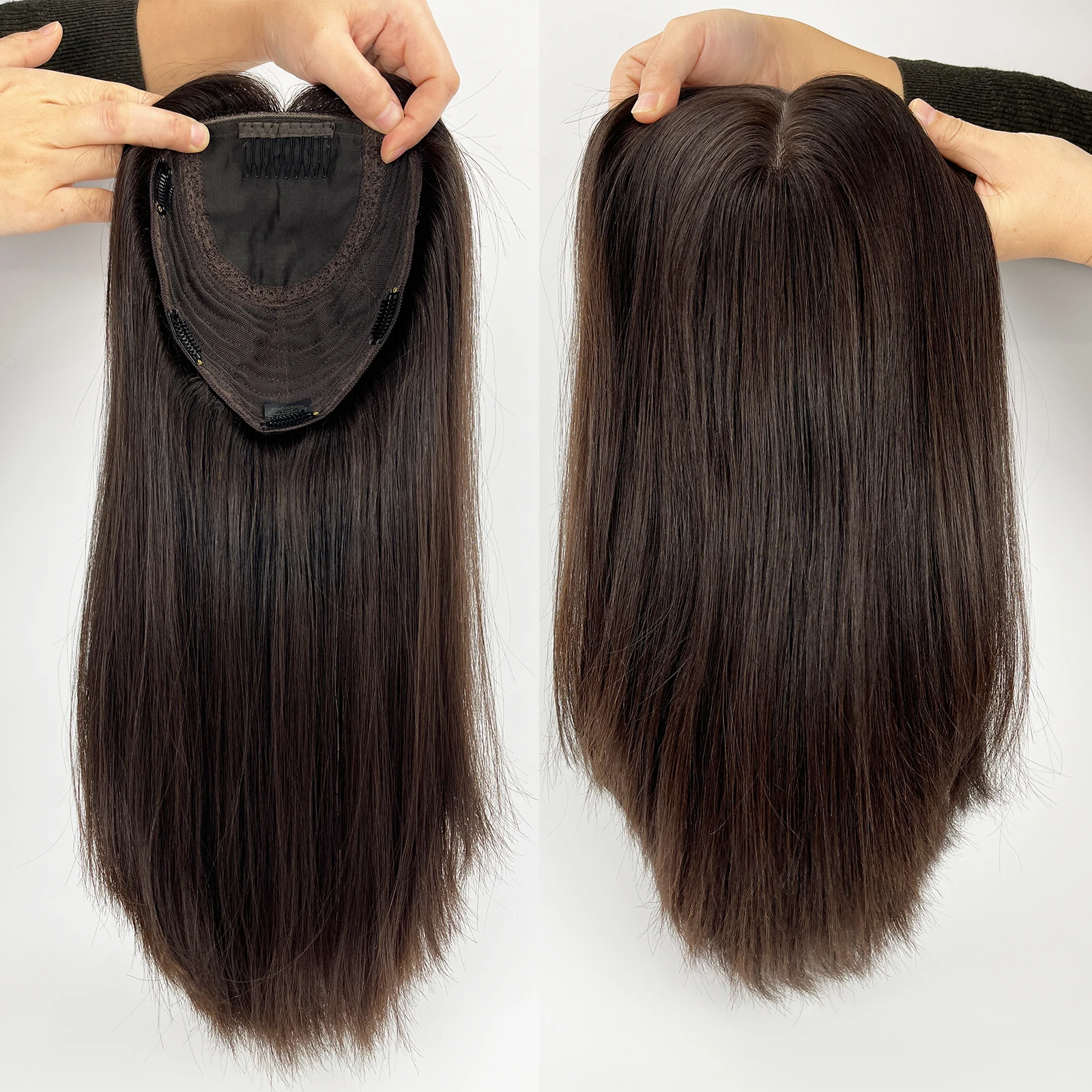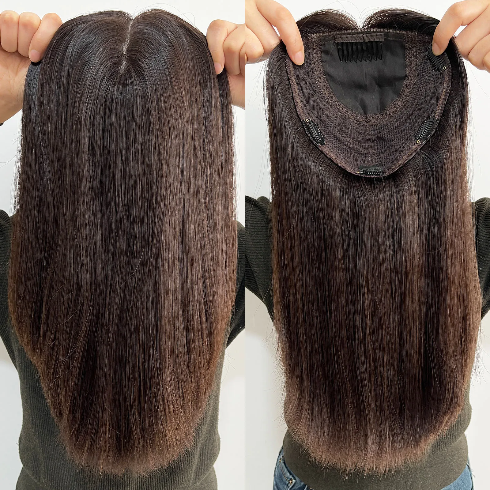Dark Brown Jewish Topper Real Virgin European Human Hair Kosher Sheitels for White Women Silk Top Hairpieces Natural Scalp