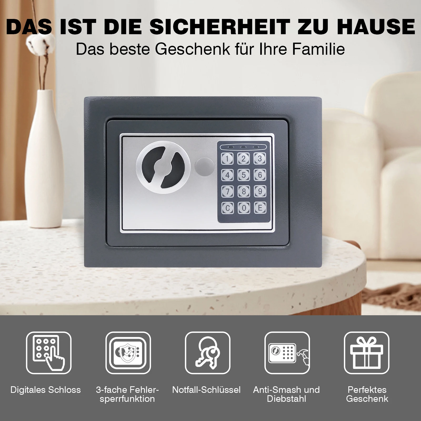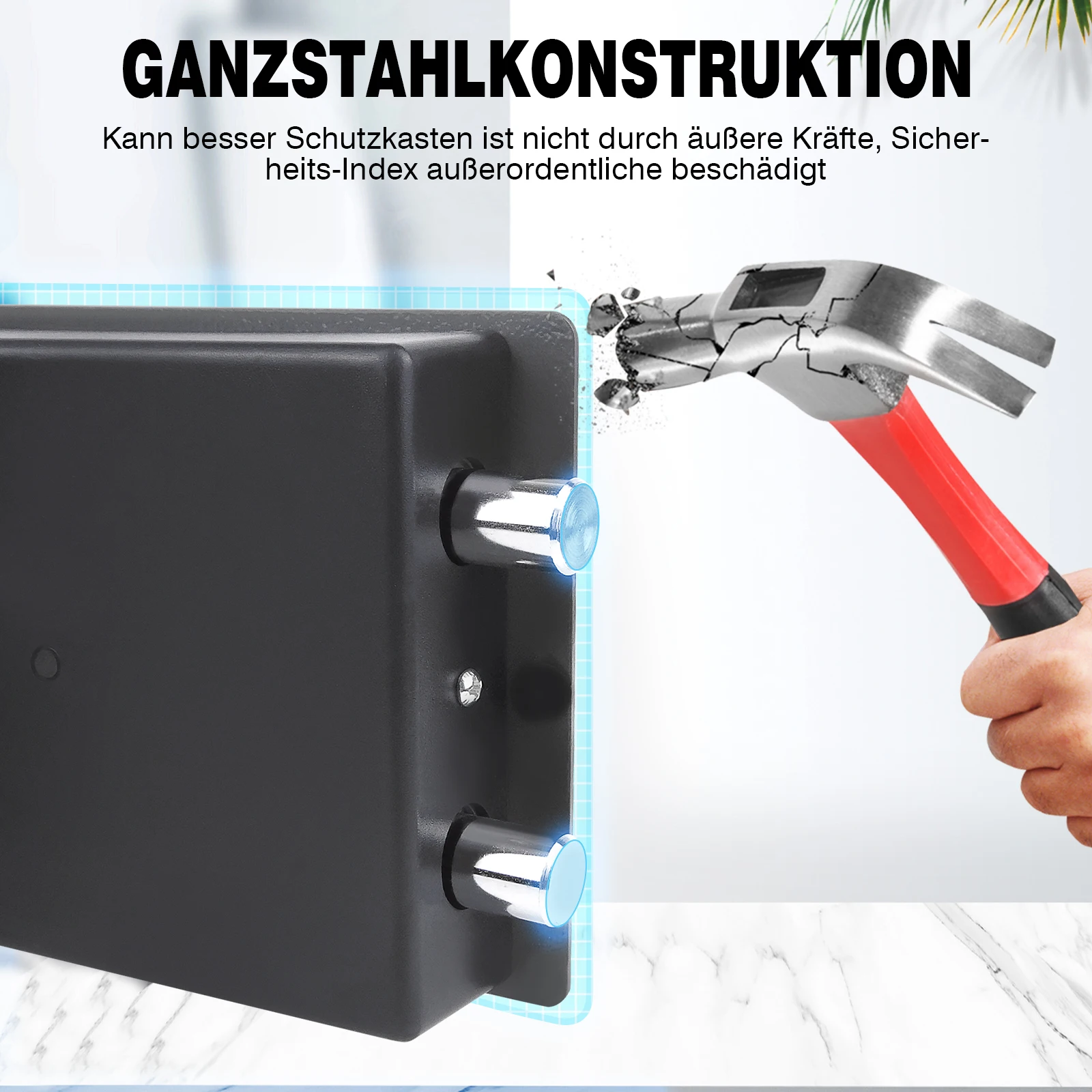 Pre-drilled holes behind the safe with included 5 cm screws for anchoring