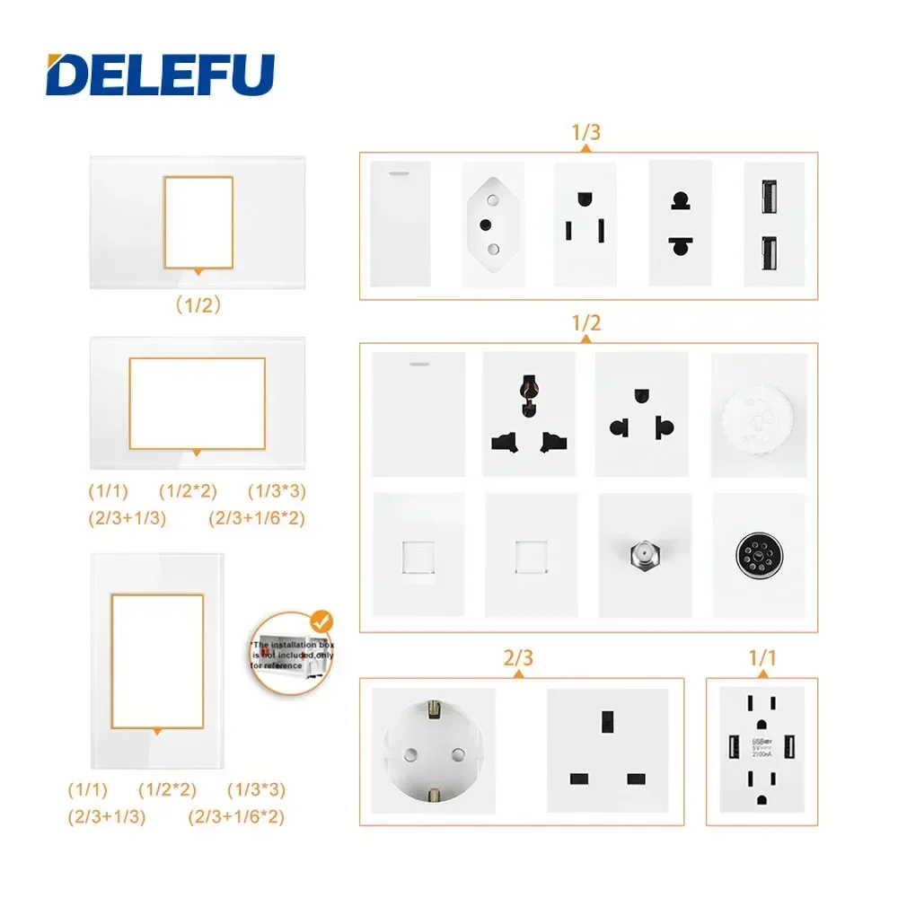| Color | 10A Brazil socket, 120 Glass panel, 120 PC panel, 1gang 2way, 1gang 2way big, 1gang 2way small, 1gang 3way, 2 Port Socket, 20A Brazil socket, 20A swtich, 20W AC, 3 Port Socke, AC, Big 3-pin socket, Blank board, Curtain Switch, Dimmer, Doorbell Switch-1-XL, EU Socke, Glass panel, Italian Socket, NET Socke, PC panel, SAT TV Socke, Smart Switch, Steel panel, Tel Socket, Thailand Socket, USB Socke |