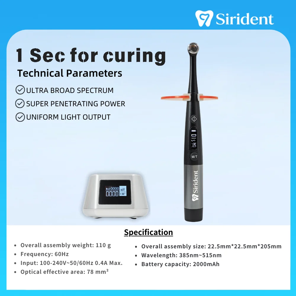 Dental 1 Second Curing Light 7 Differernt Mode With Caries Detection 3100mW/cm² 360 Degree Head Dental Equipment Lamp