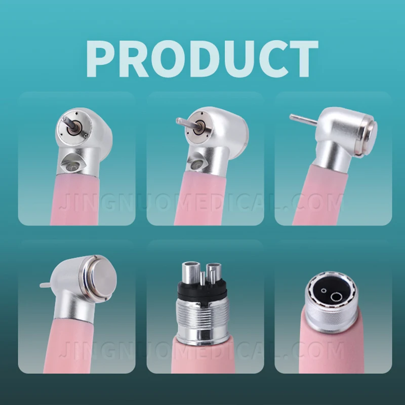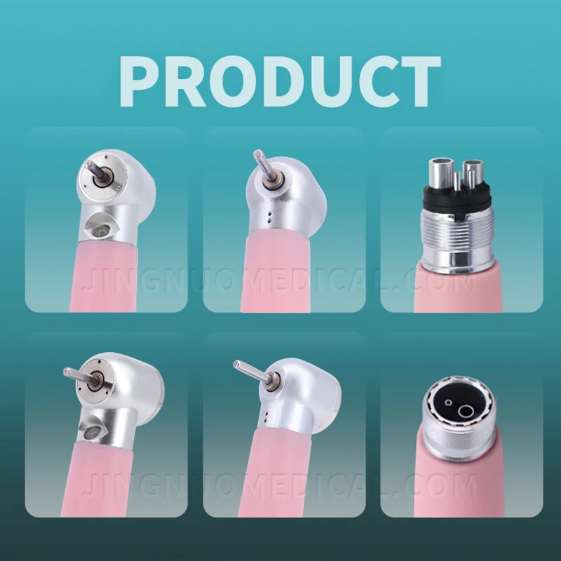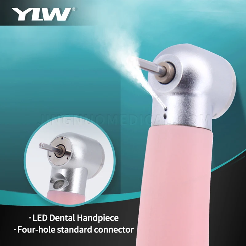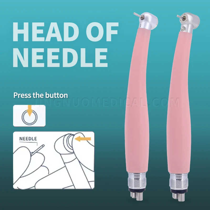 Dental Handpiece Led Light or not High Speed High Air Turbine Pink Fast Hand Piece Push Button Ceramic Bearing Dentistry Tool 2/4 Holes