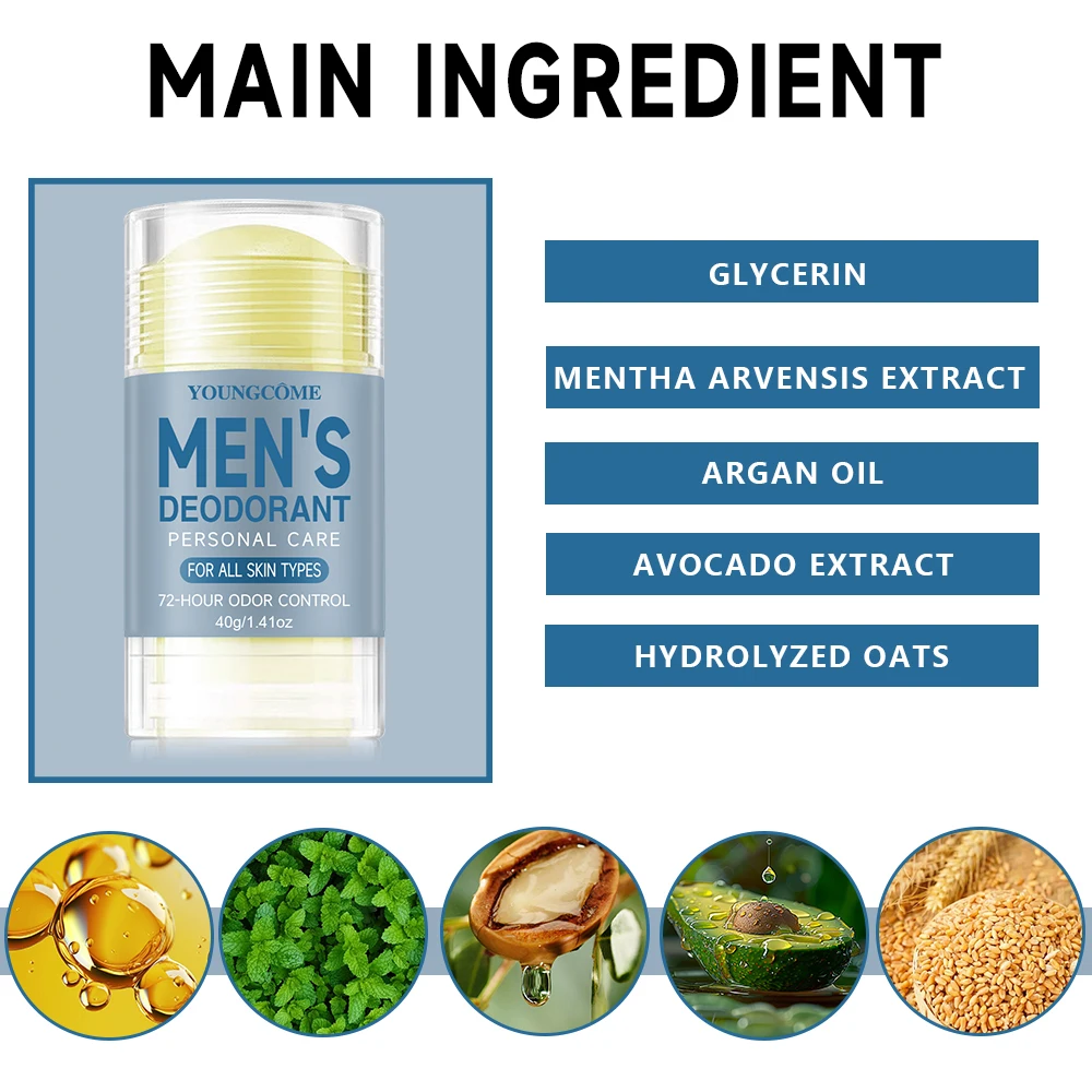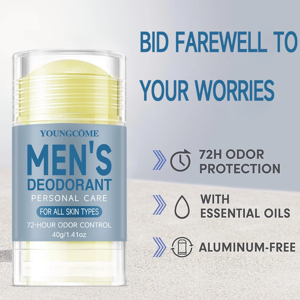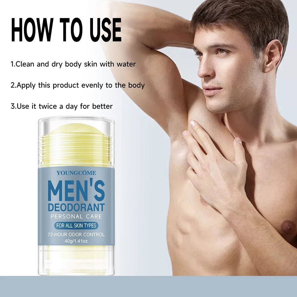 Deodorant for Men Portable Alum Stick Sweating Odor Remover Underarm Body Deodorant Stick Fast Dry Lasting Refresh 72H
