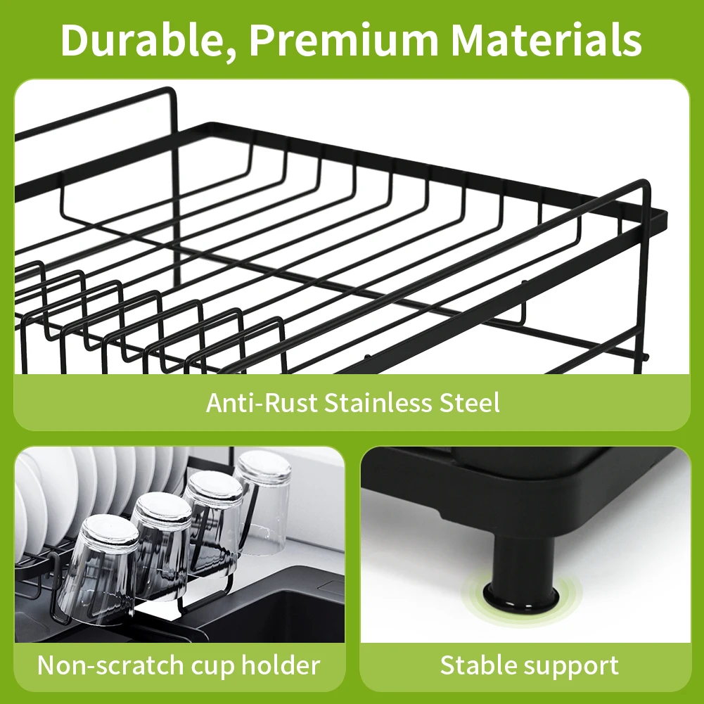 Easy to install and clean: The dish drain rack is easy to install. In addition, the dish rack is also easy to clean due to the waterproof coating. After use, you can just wipe the dish drain rack with a damp cloth or rinse it under running water.
