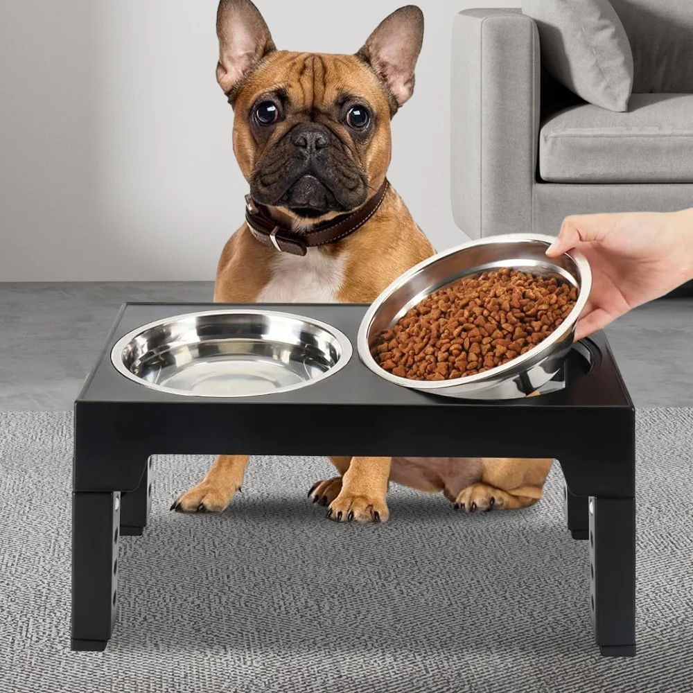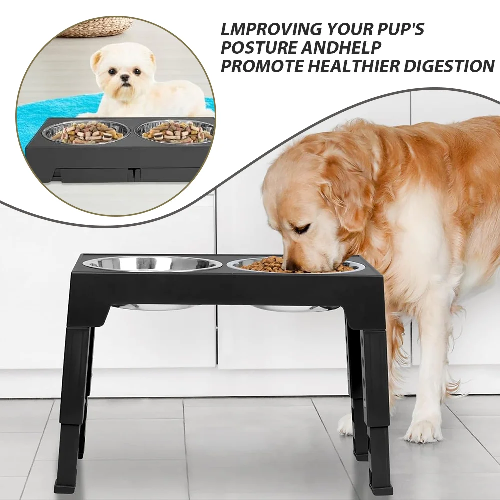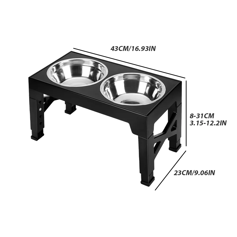 Dog Feeding Station / Stainless Steel Dual Bowl Adjustable Height
