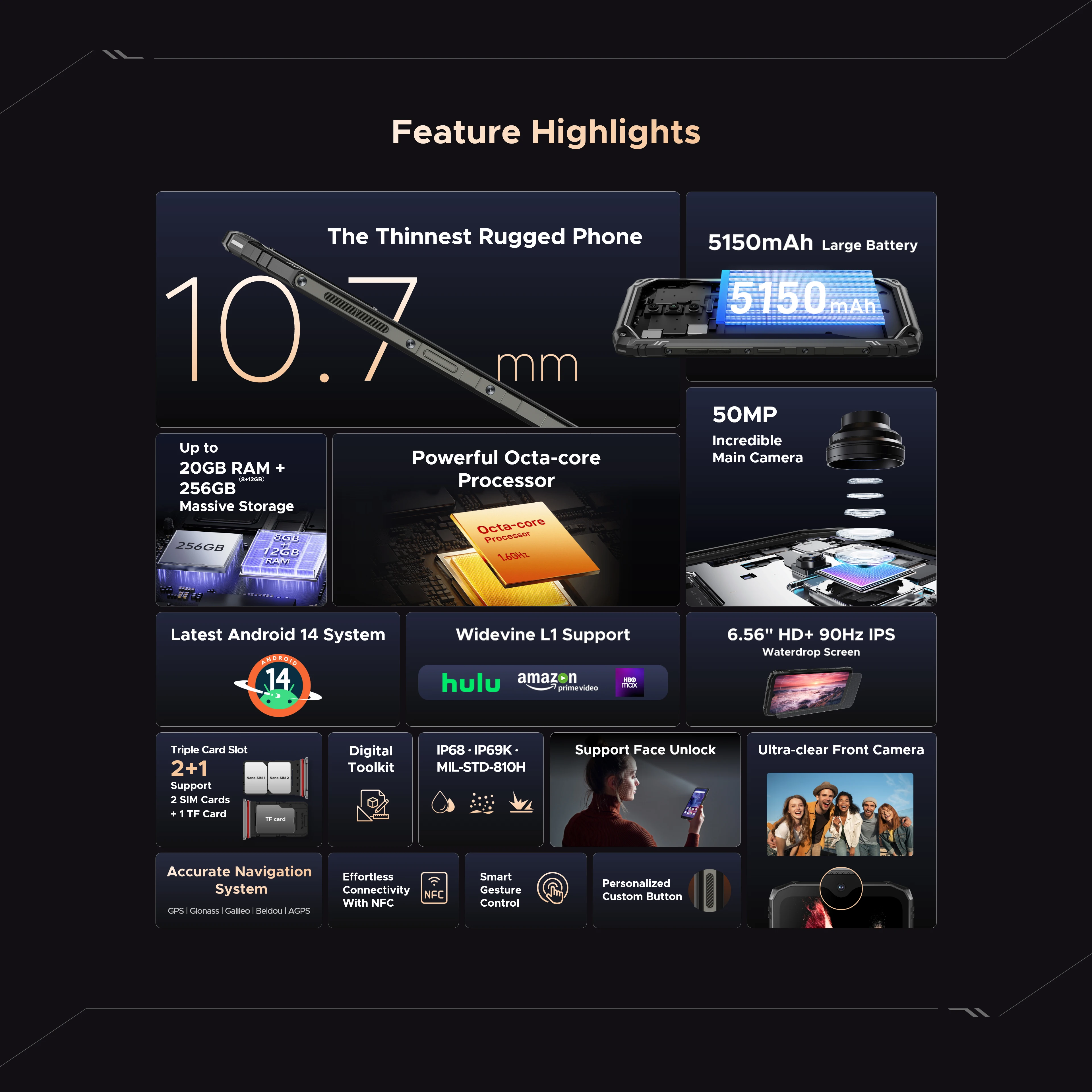 DOOGEE Blade10 Ultra Rugged Phone 32GB(8+24)+256GB 50MP Camera 6.56'' Display 5150mAh Battery 10.7mm Ultra-thin NFC Smartphone