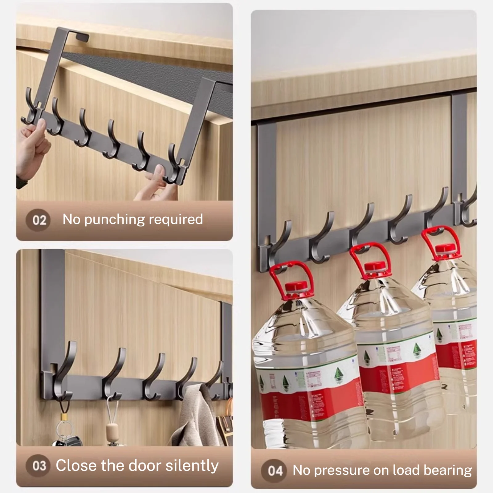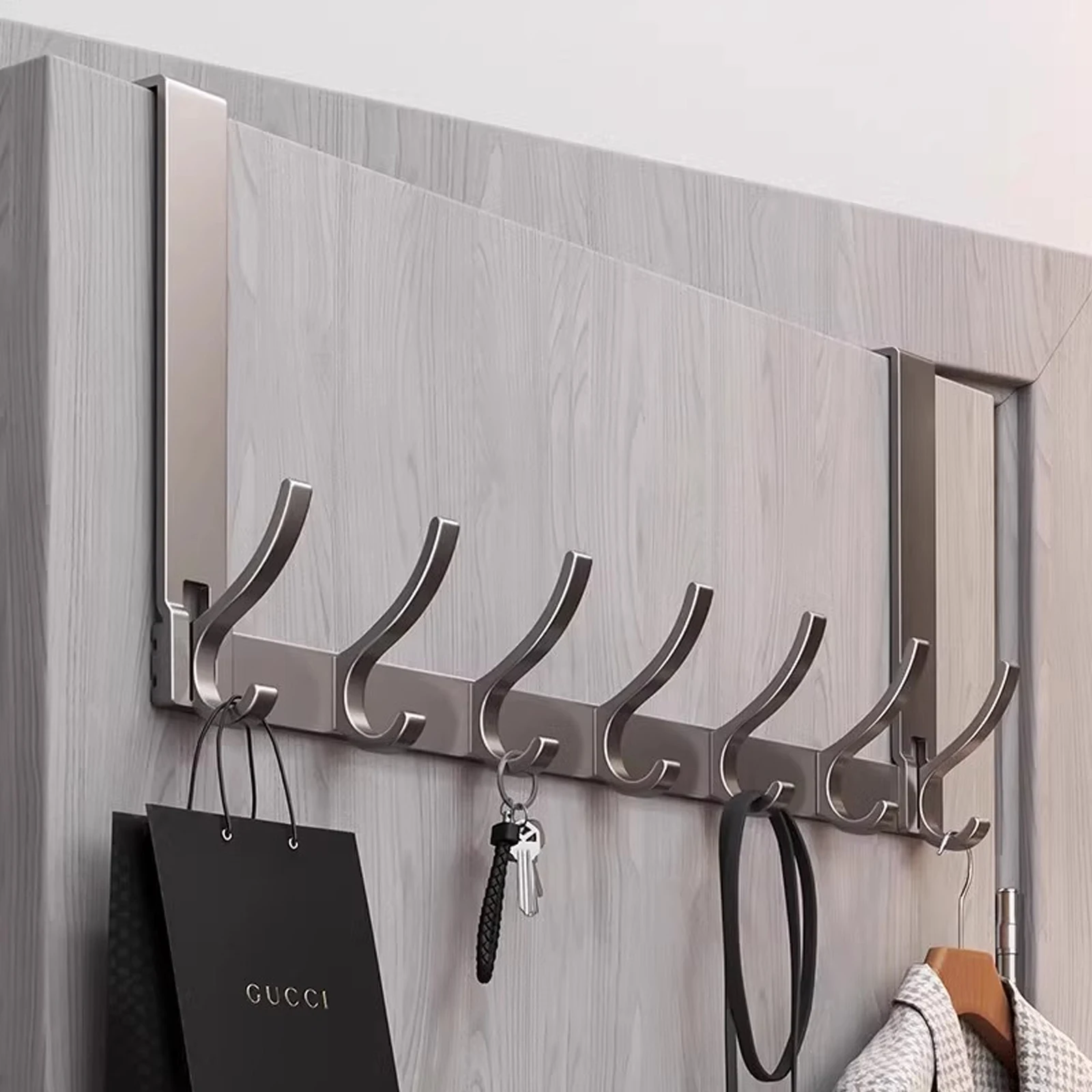 This door hook features 7 sturdy aluminum hooks, providing ample space for hanging clothes, bags, and other items.