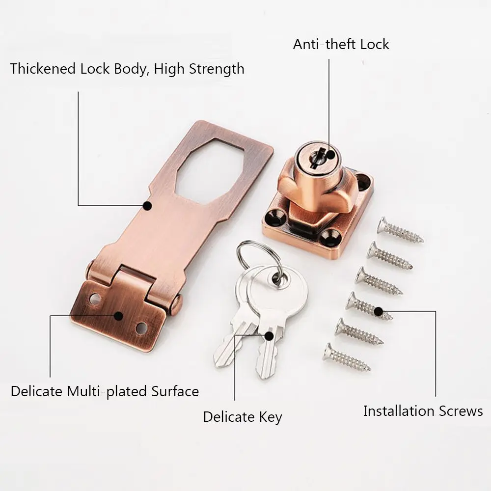 This keyed hasp lock can ensure safety of important items and files placed in drawer, cabinet box, etc.
