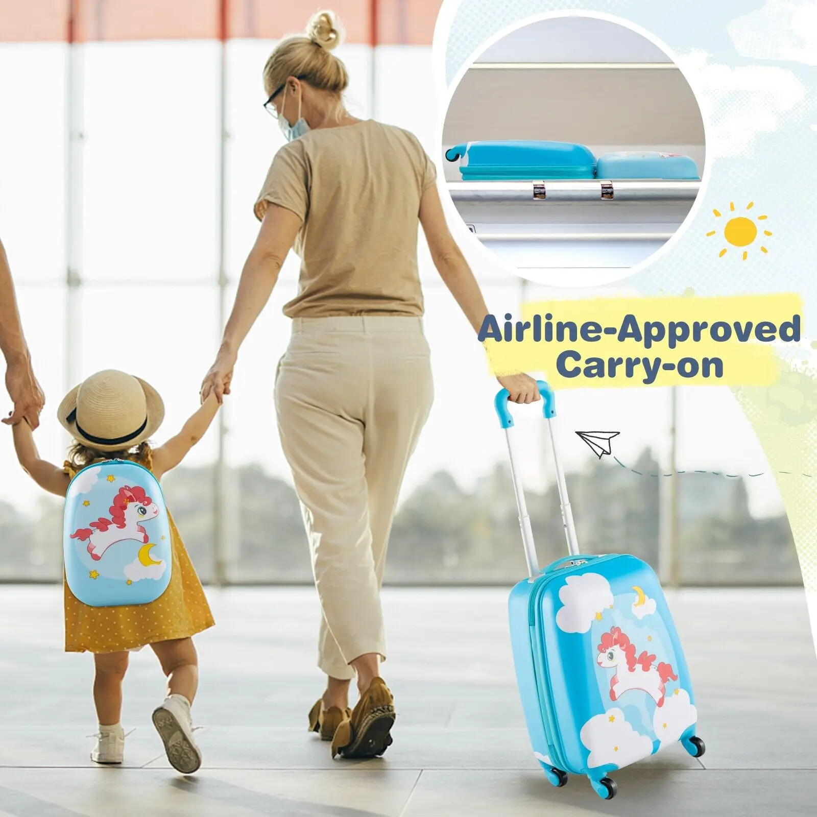 2 PCS Kids Luggage Set: The kid luggage set includes a carry-on hardshell suitcase and a backpack bag, which are perfect sizes to be put in the overhead compartment or under the seat of the airplane. Moreover, the luggage set only weighs 2.5 kg/2 kg, which is lightweight enough for kids to pull or push around.