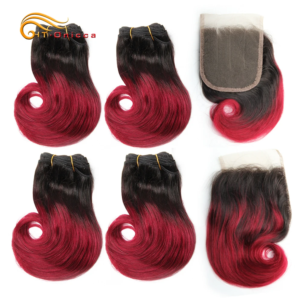 Double Drawn Funmi Hair Bundles With Closure Curly 8 Inch 100% Human Hair weave Brazilian Remy Hair Extension 1B 27 30 Burgundy