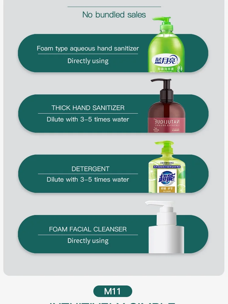 Economical and Eco-Friendly: Compatible with various soaps including hand lotion, dish soap, and shampoo. This dispenser allows for a water to soap dilution ratio of 1:3-5, saving up to 50% on soap usage, making it a cost-effective solution for daily hygiene.