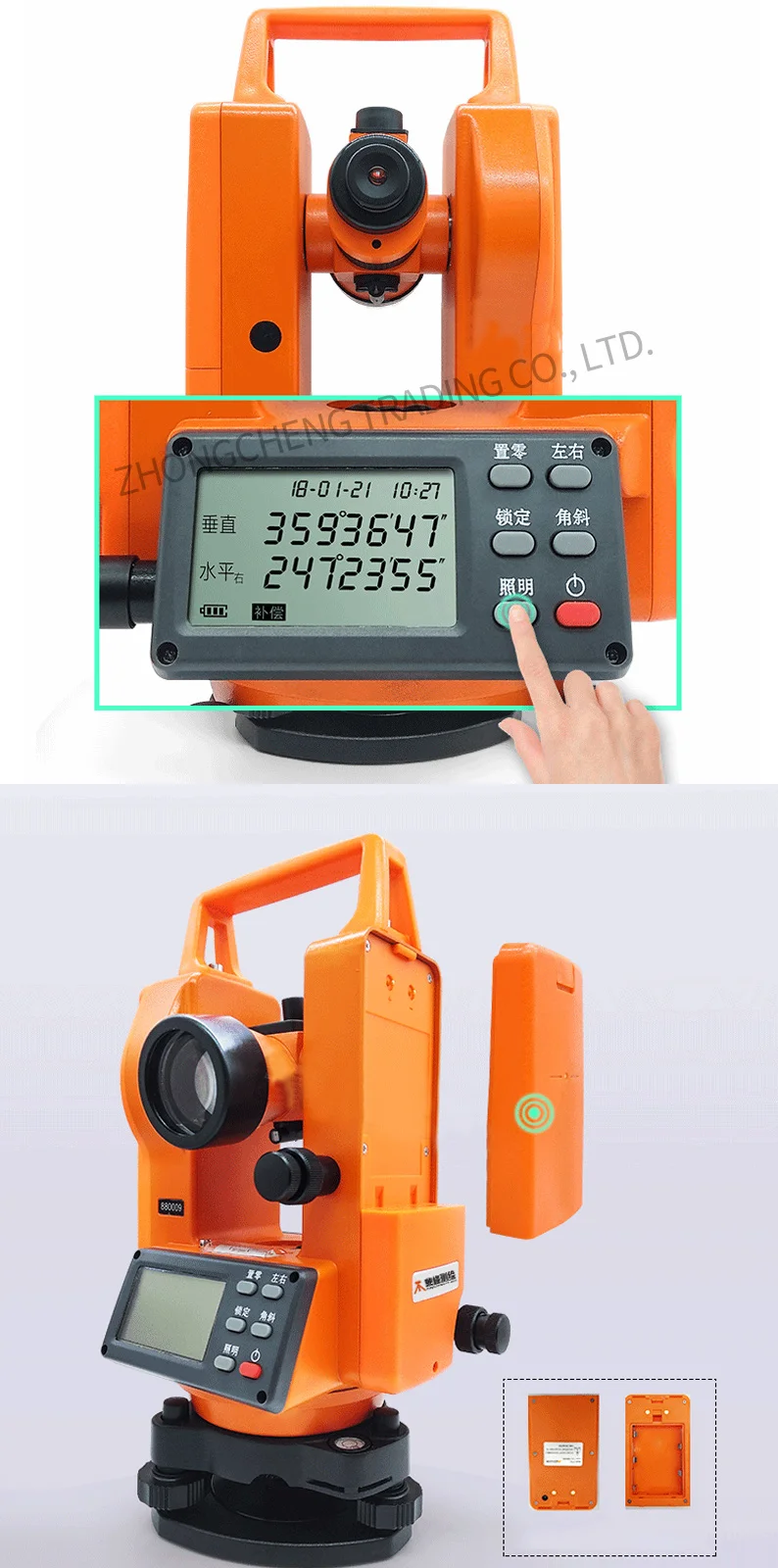 - Electronic tilt sensor: vertical angle compensation