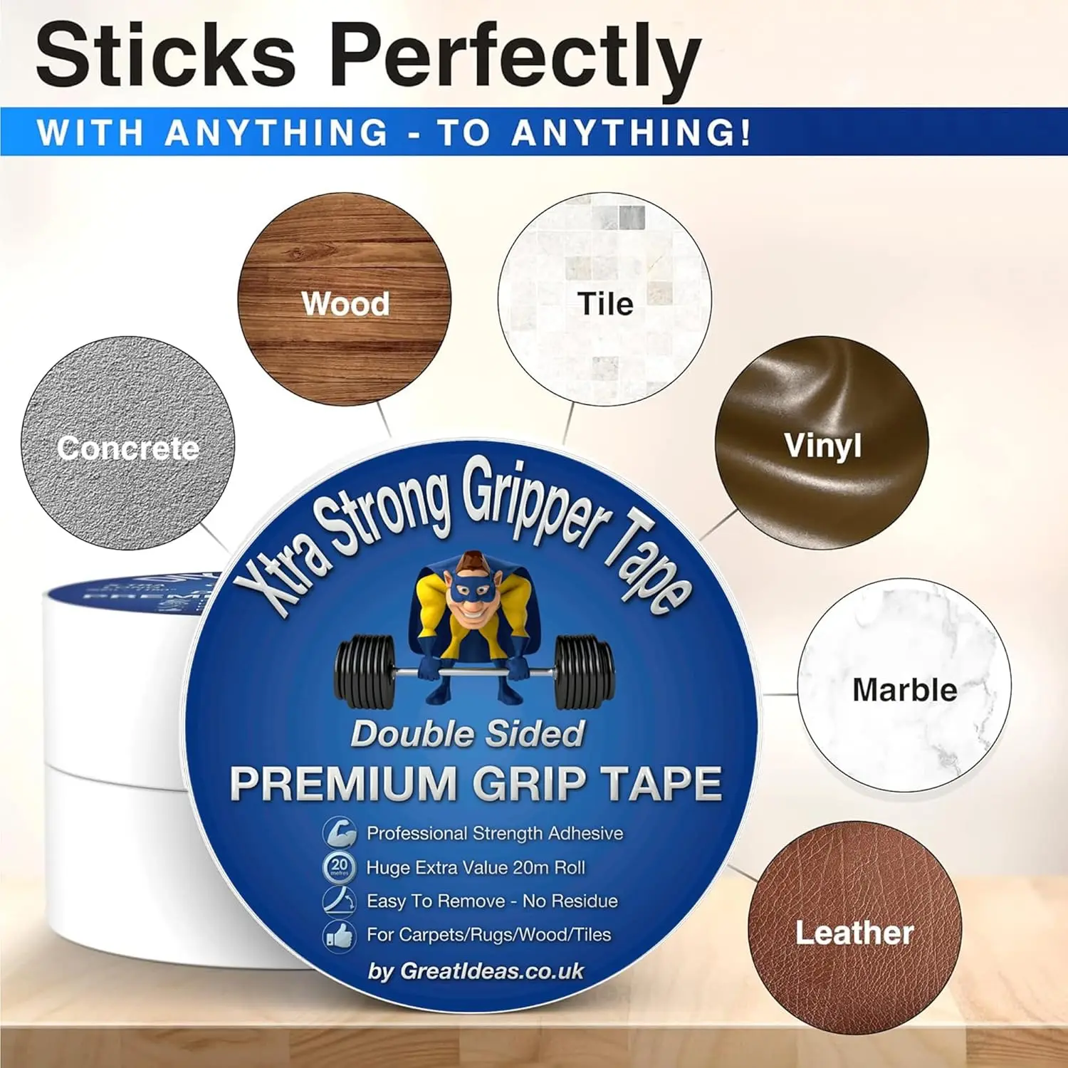 Multi-Surface Bonding: Works flawlessly on hardwood, vinyl, marble, concrete, and carpet underlays.