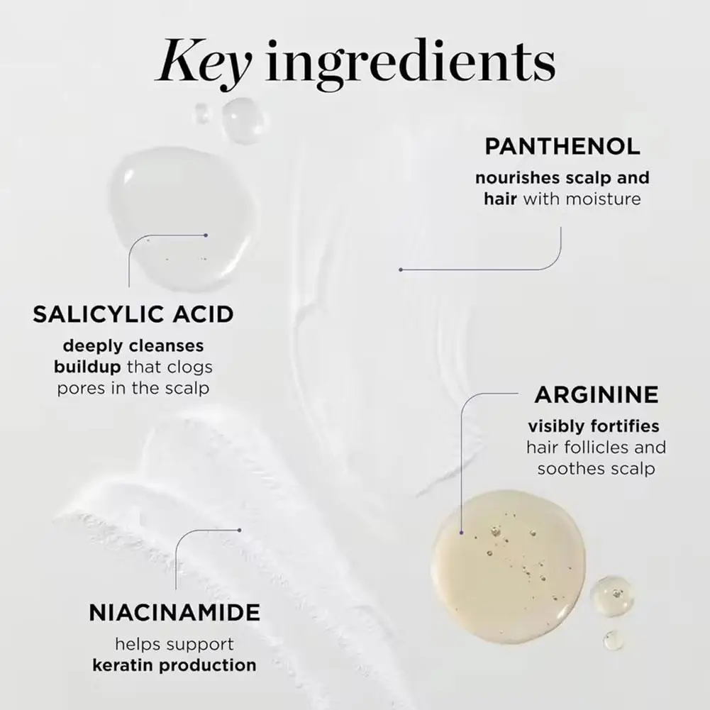 2. Targeted Scalp Nurturing: This revitalizing is infused with a powerful blend of key ingredients to promote optimal scalp health. Salicylic Acid works to deeply cleanse and clear scalp buildup, Arginine visibly fortifies hair follicles, Panthenol delivers essential moisture, and Niacinamide supports natural keratin production for a balanced and healthy scalp environment.