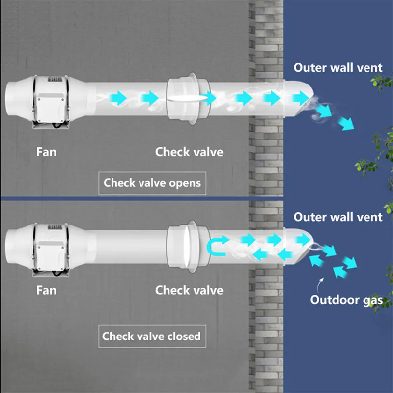 Draft Blocker Damper Ventilation Check Valve Draught Back Shutter for Inline Ducting Kitchen Home Ventilation Grill