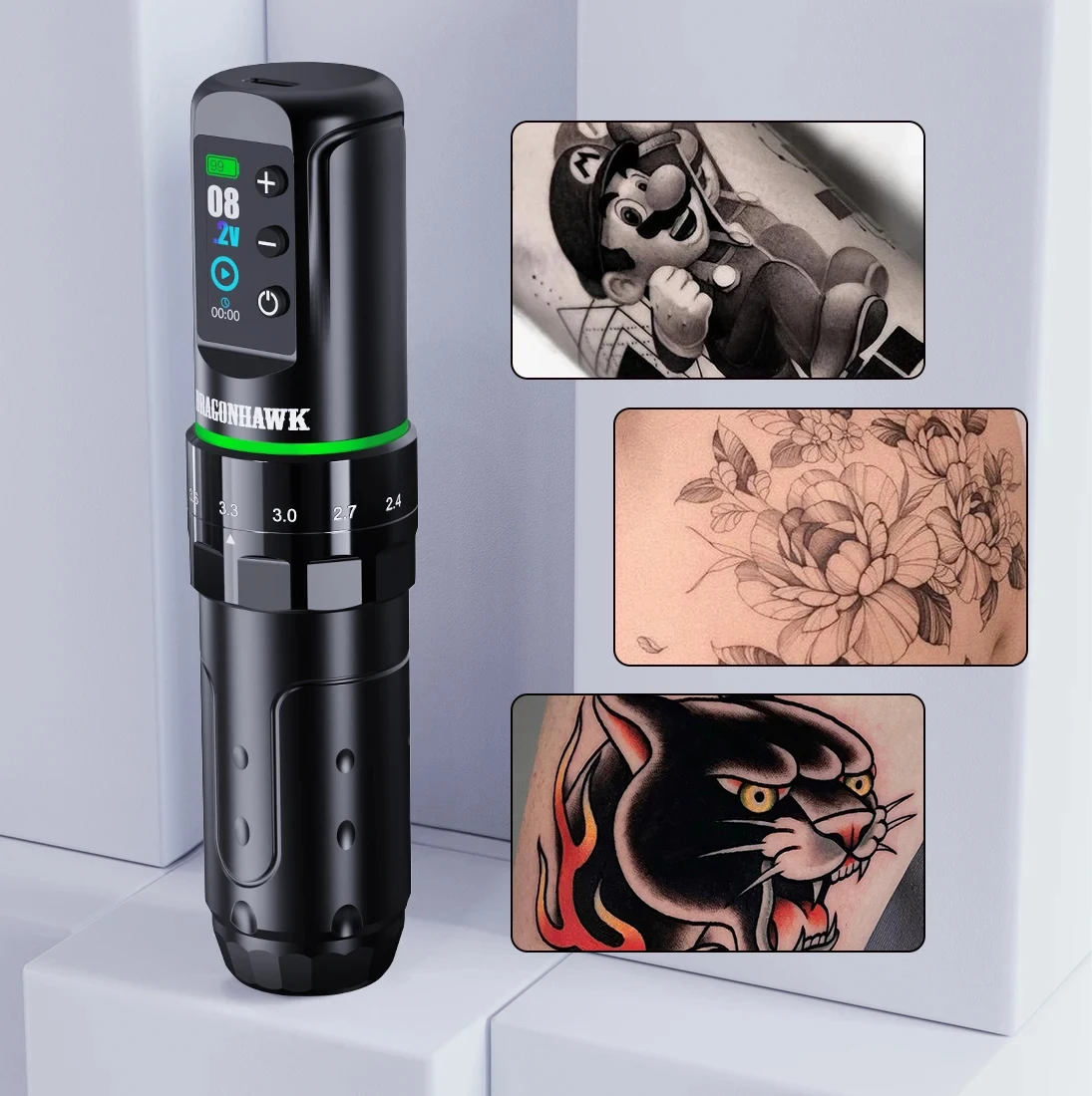 Designed for professional tattoo artists, the Dragonhawk L3 excels in lining, shading, and blending; Its cordless design offers freedom and control for high-quality results