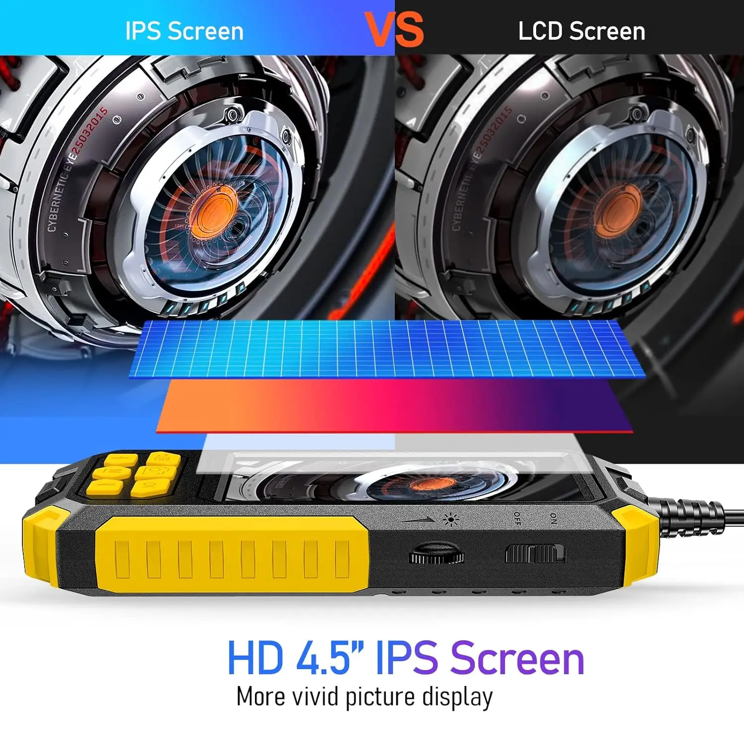 Dual Lens Endoscope Camera 1080P HD Borescope Inspection Camera 4.5'' IPS IP67 Waterproof Snake Camera with 8 LED Light