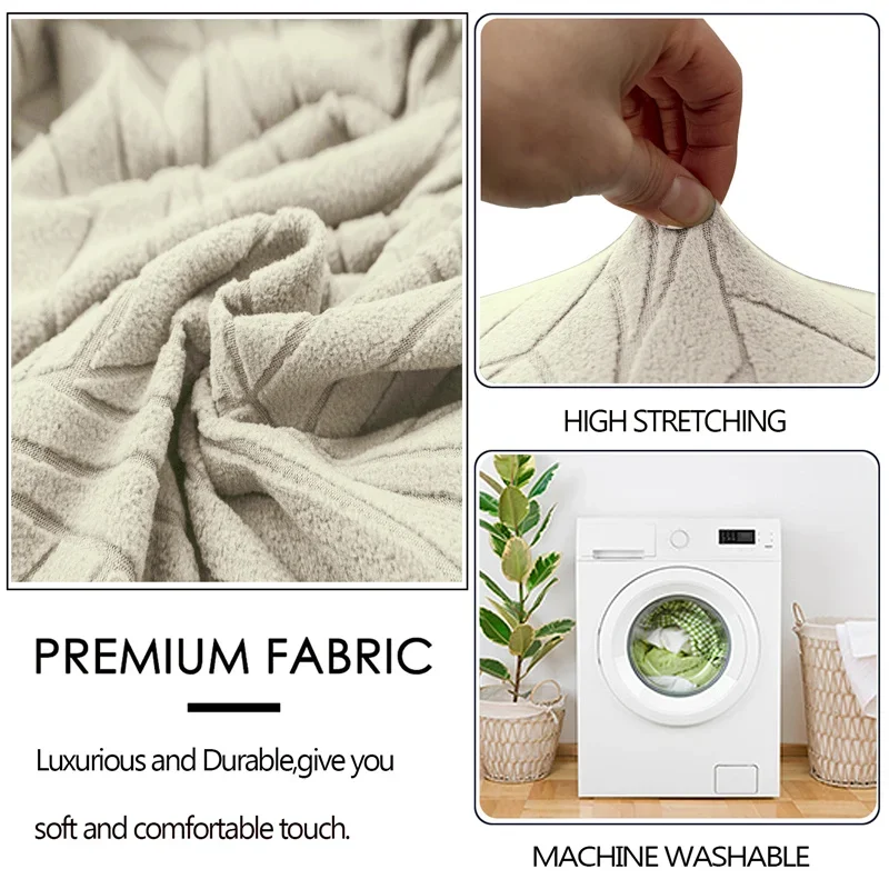 ☆This Modern Chair cover is made of Jacquard Fabric, which is soft , comfortable and wrinkle-resistant, no ironing required. The  material of cover is stretchable , which is stretch and recover quickly.