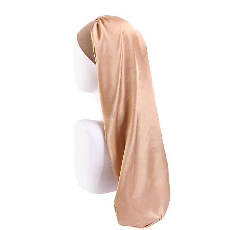 Elastic Wide Edge Long Satin Bonnet Sleep Hats Wrap Night Cap Care Women Men Unisex Extra Large For Natural Curly Loose Hair
