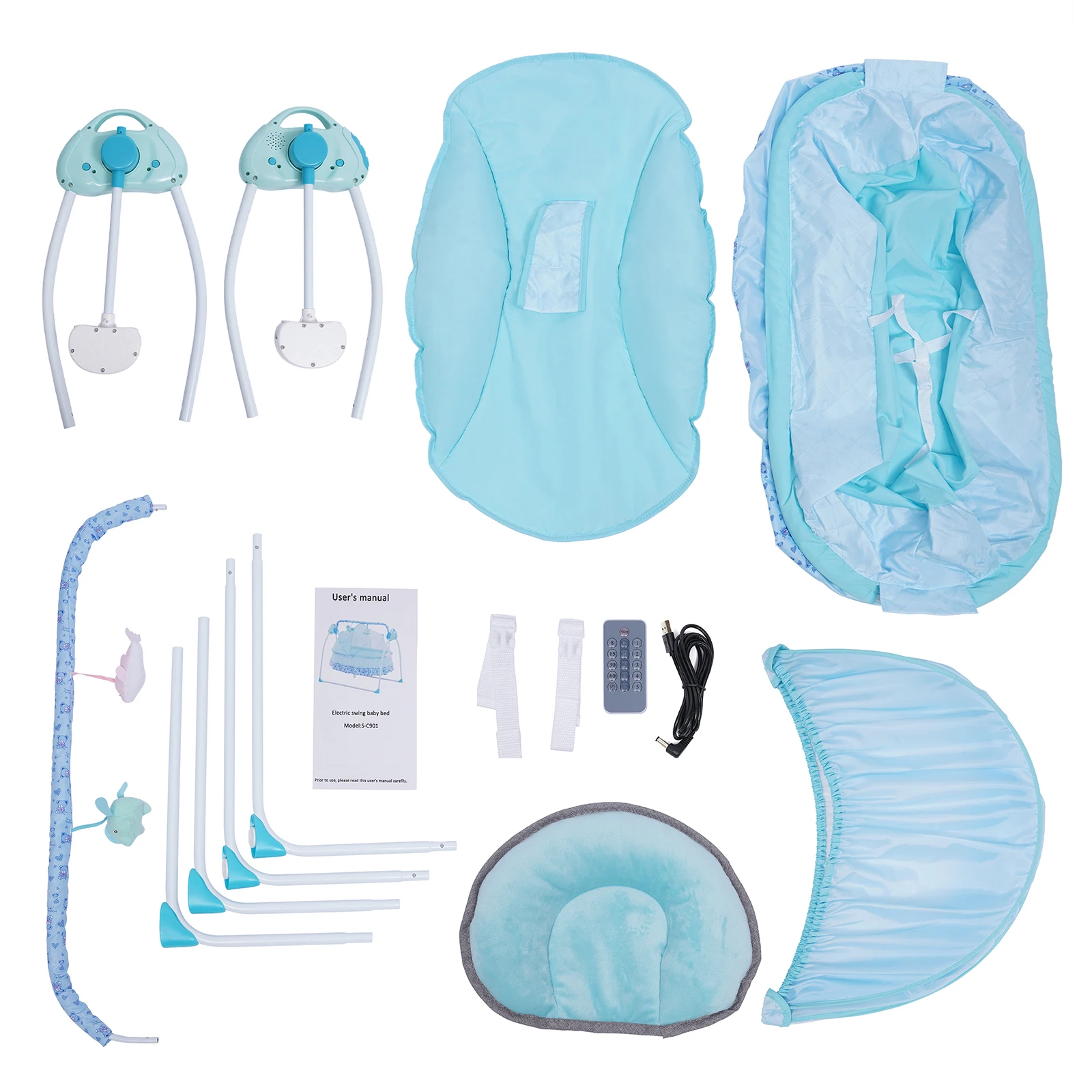 It can be used to coax your baby to sleep and quiet your crying baby indoors and outdoors. It is also suitable for playing and listening to songs and stories in this baby cradle swing.