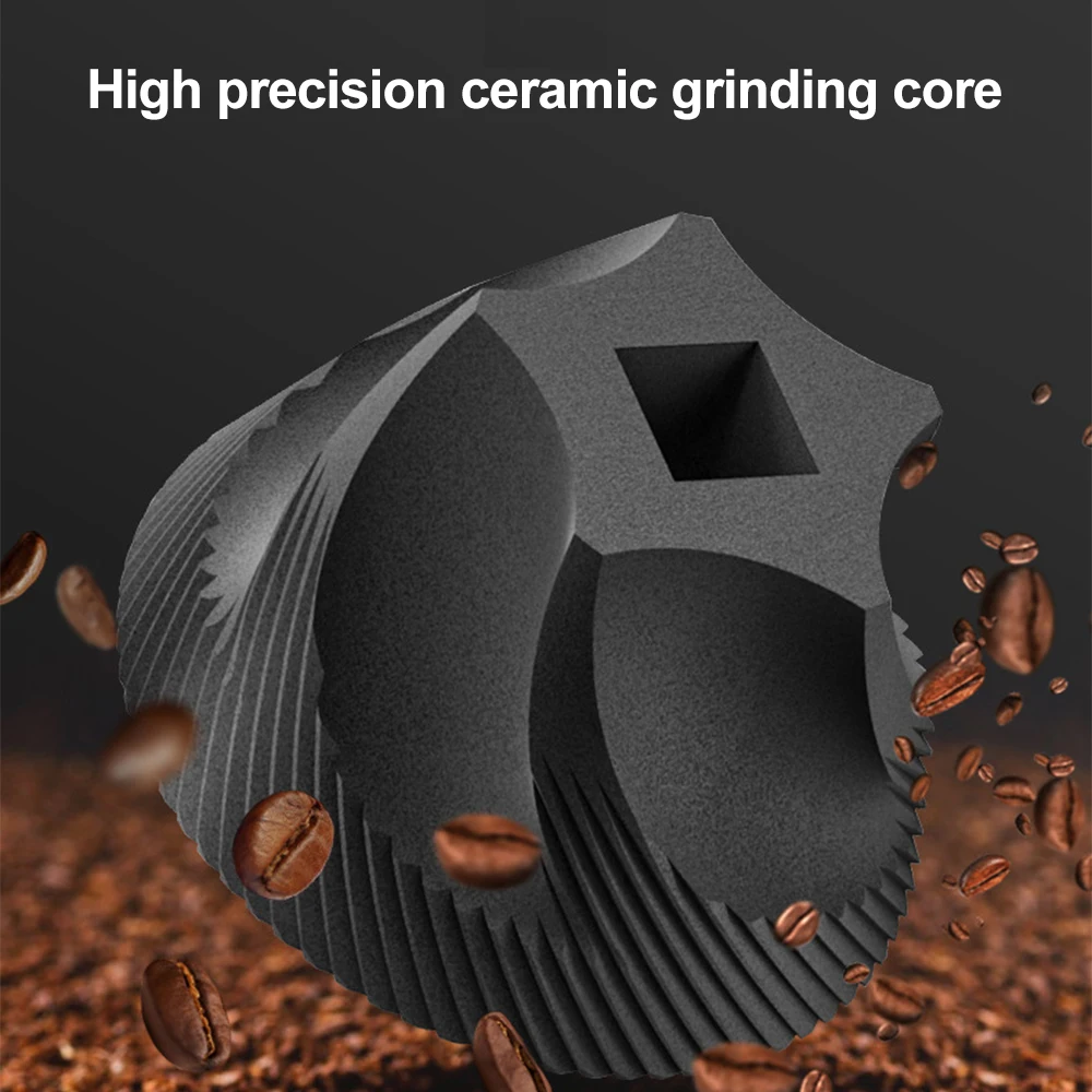 3. High-precision ceramic grinding core, equipped with low-noise pure copper motor, low-temperature grinding, not easy to heat up during grinding, reduce coffee flavor loss, ceramic material is easy to rinse.