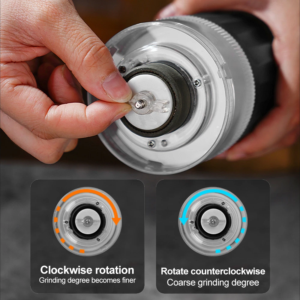 2. Conical blade structure, fine and uniform coffee powder. Clockwise rotation, finer grinding, counterclockwise rotation, coarser grinding.