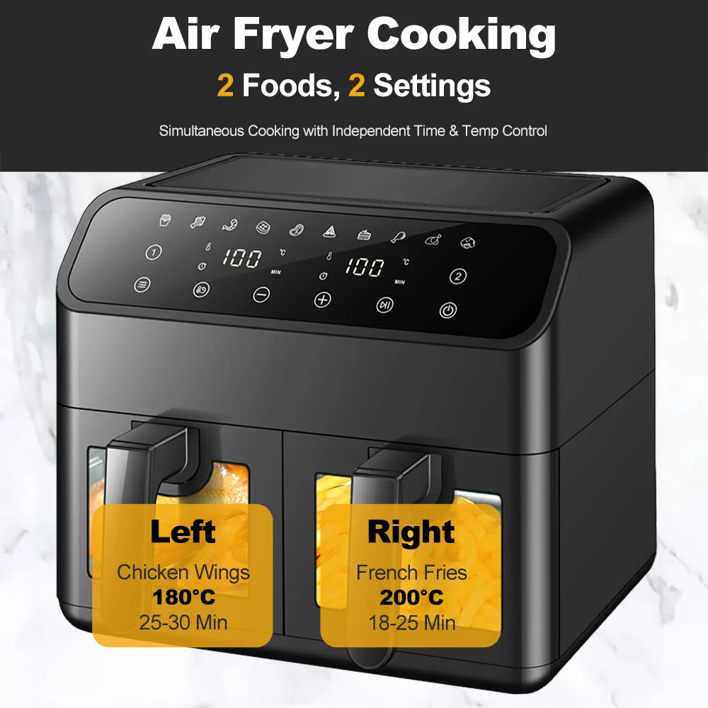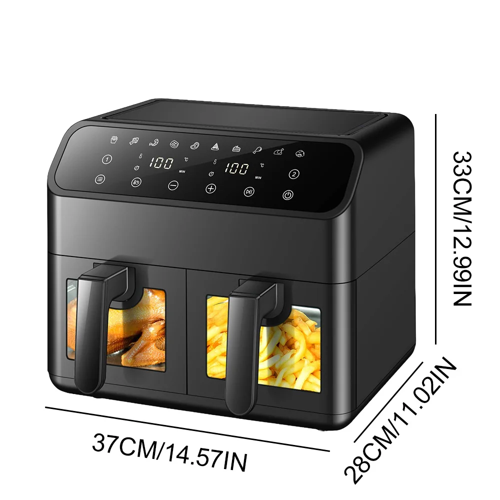Electric Dual-pot Air Fryer With Viewing Window Digital Touchscreen Multifunctional 4L Double-pan 360°Baking Home Air Fryer
