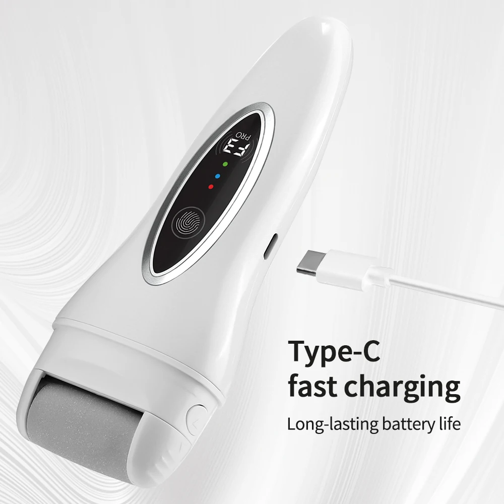 1. Three-speed intelligent adjustment: the first speed is slowly gentle for daily foot care, the second speed is fully gentle for dead skin and peeling skin on the feet, and the third speed is strong for dry, cracked and old calluses.