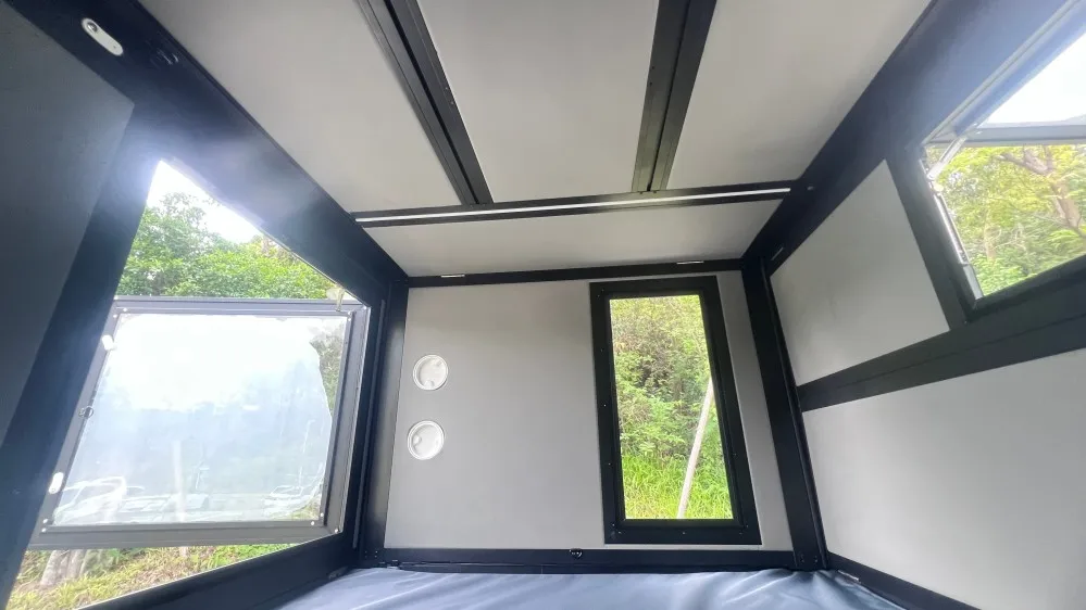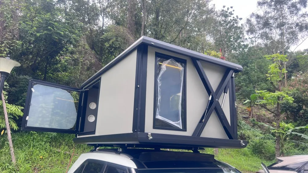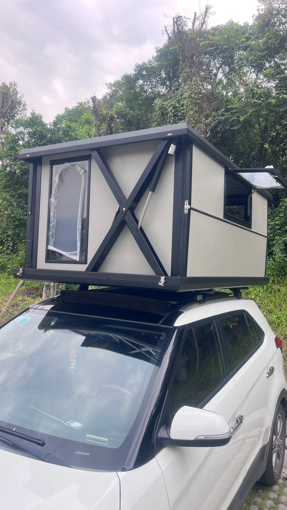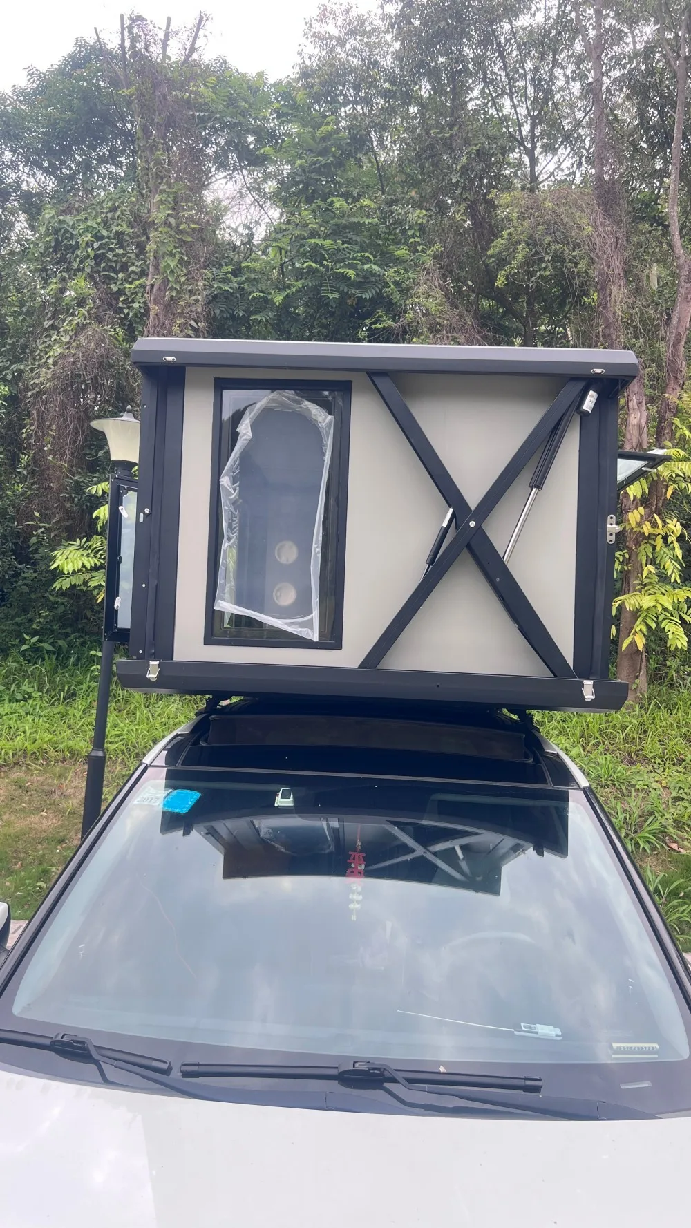 Feature | auto electronic lifting system, folding design, with sunroof entrance which allow you to entry from sunroof entrance port of your vehicles; all walls, floors/ceilings, bottom panels, all frames are made of aluminum alloy materials, super durable, with 2 air conditioing holes; with LED lighting; with mattress; with 4pcs super durable acrylic galsses windows; also can entry by a ladder from outside from the biggest windows; |