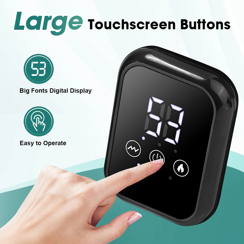4. This cordless massage shoulder brace provides simple, user-friendly operation with touch-sensitive buttons and a large digital screen that activates with a 3-second hold.