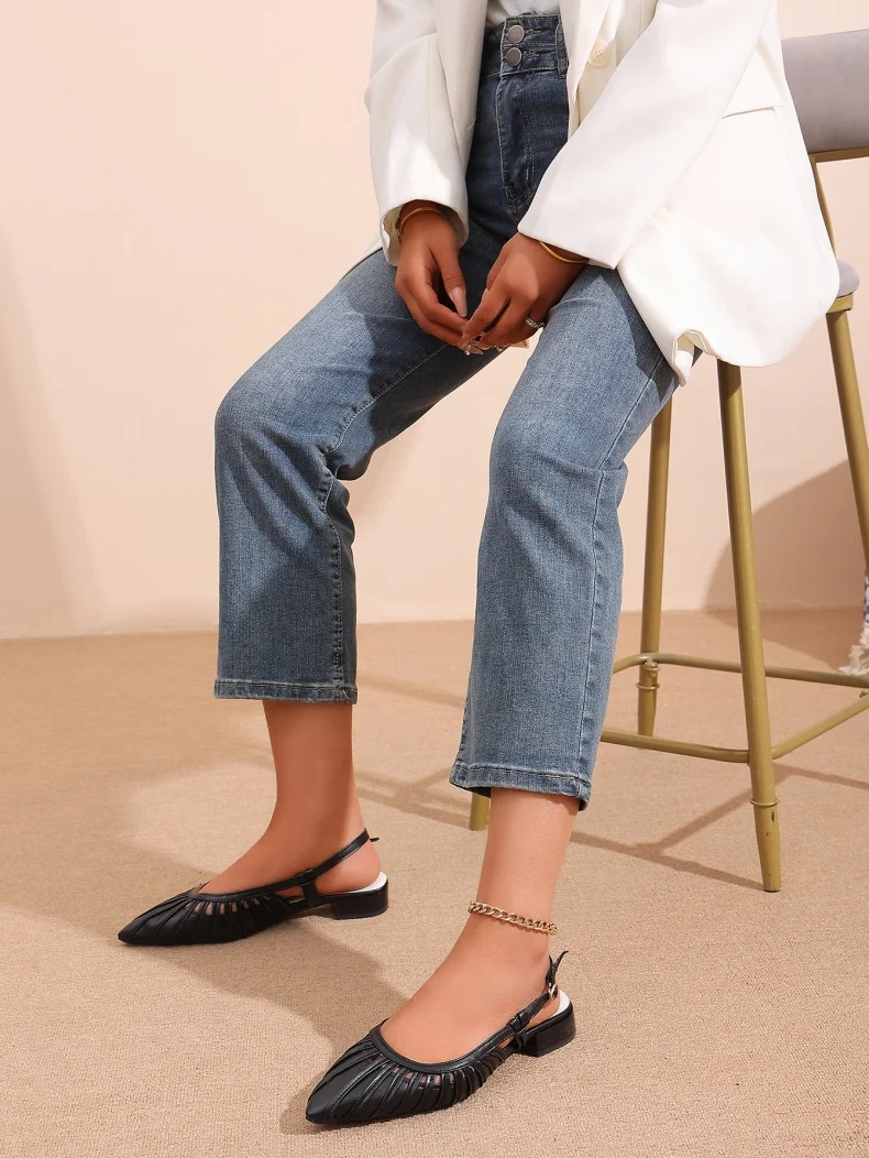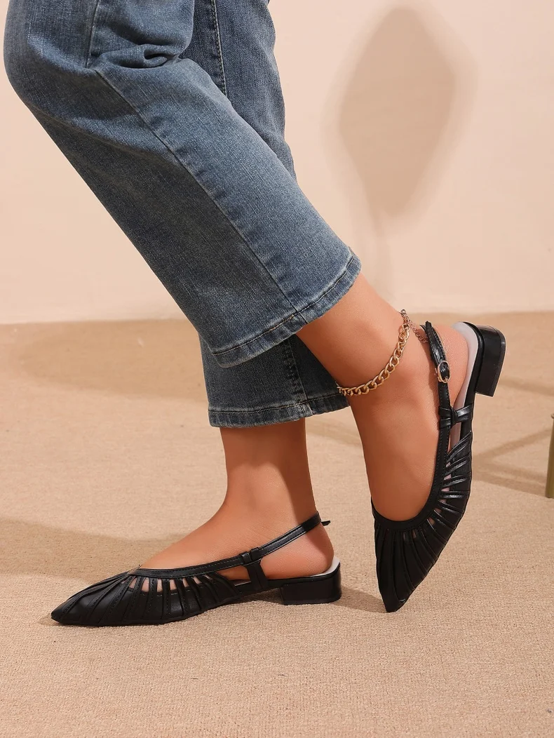 - with Strap Low Heel sandals: Hollow Back Comfortable Shoes